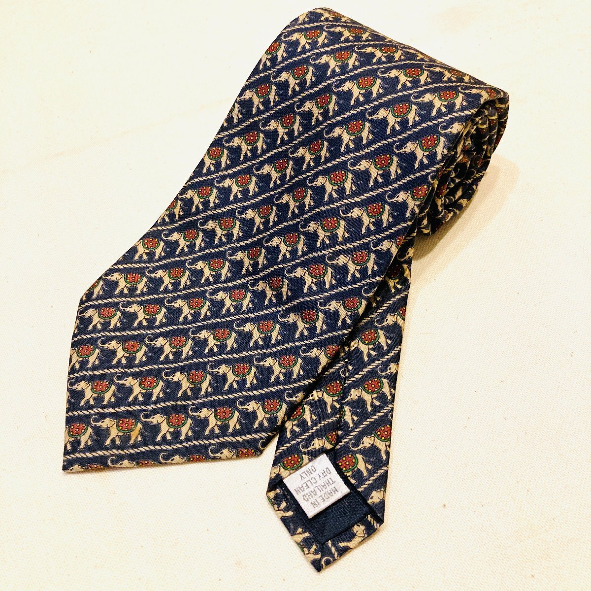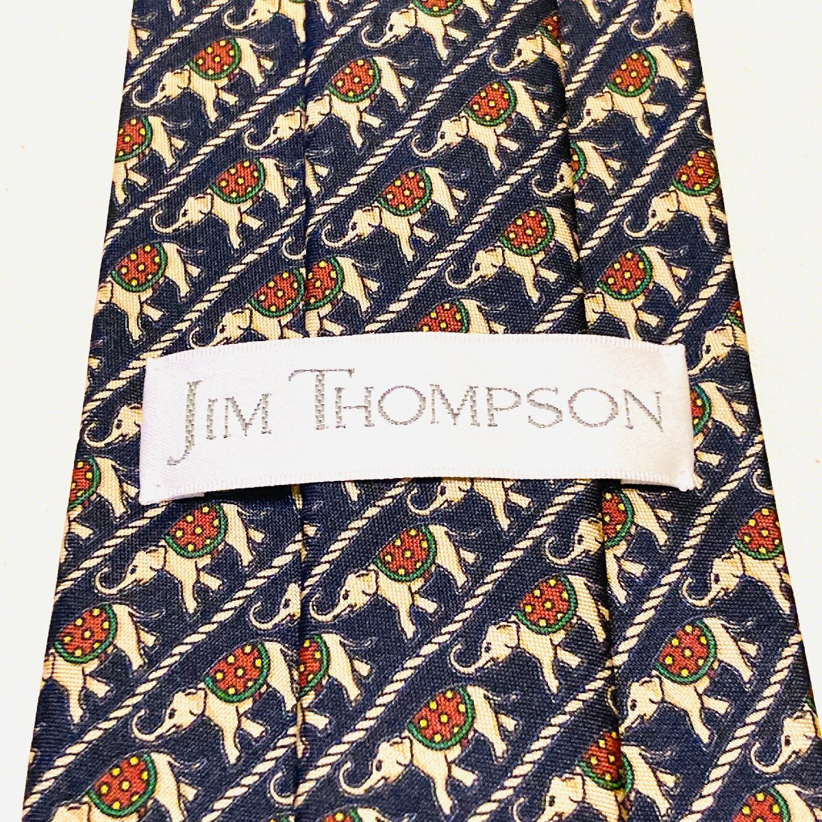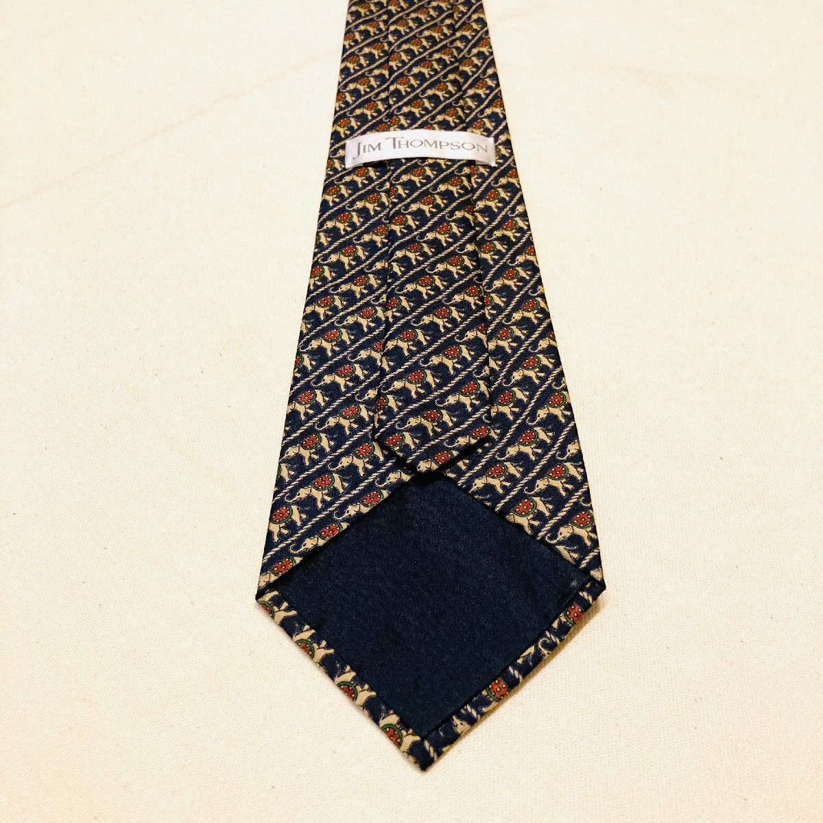 JIM THOMPSON ジムトンプソン タイ製 絹 シルク SILK 100% 高級 ネクタイ ネイビー系 アニマル柄 象 総柄