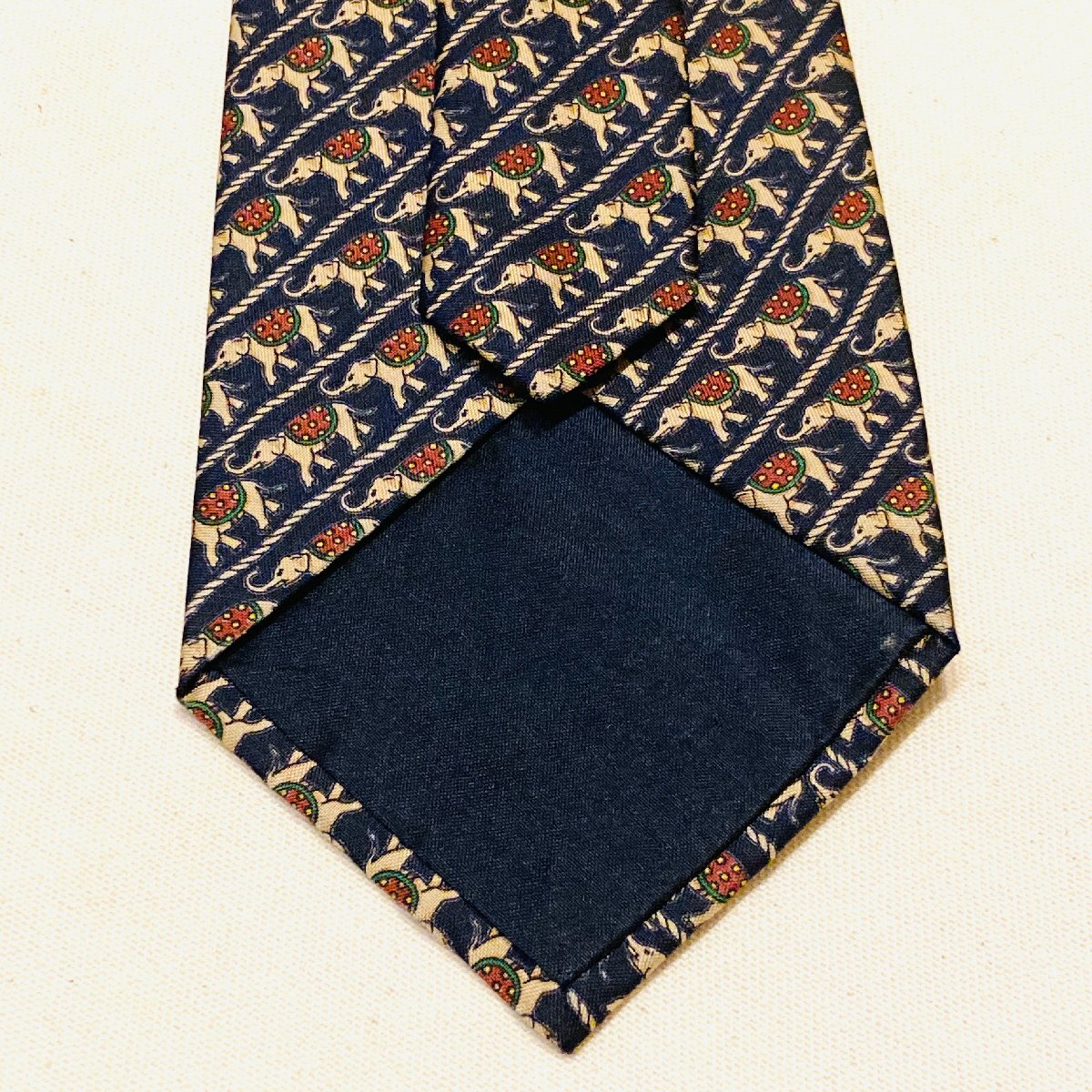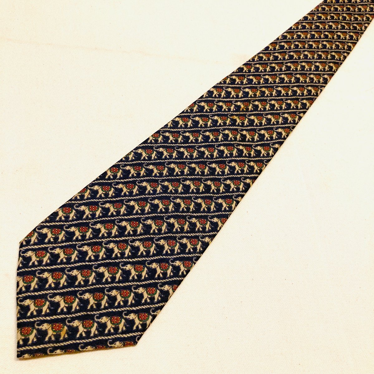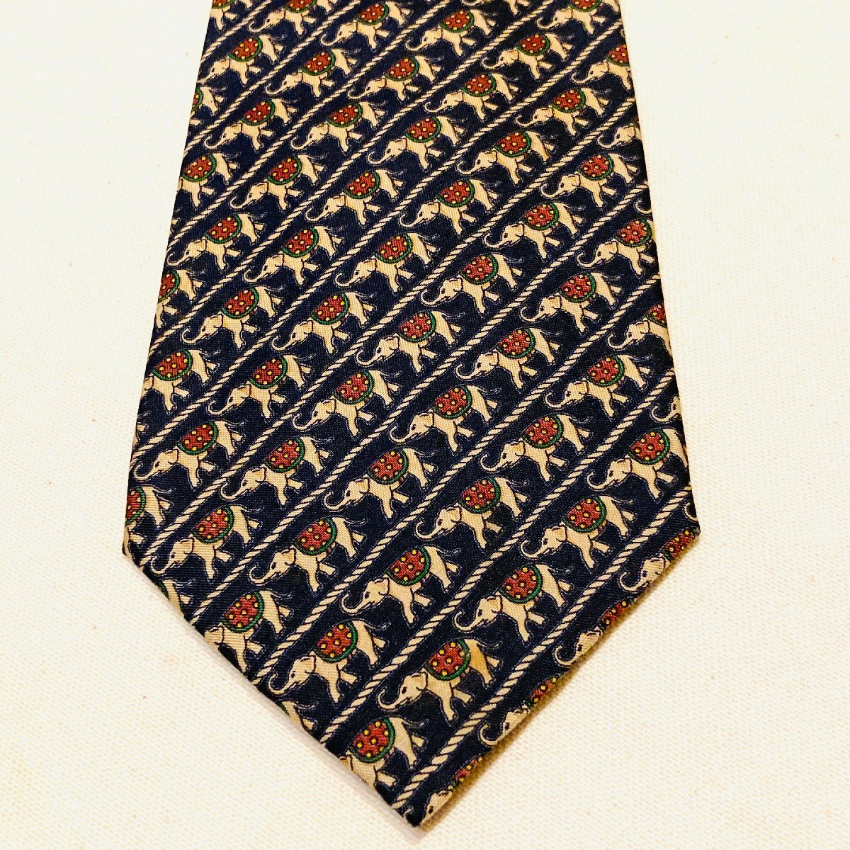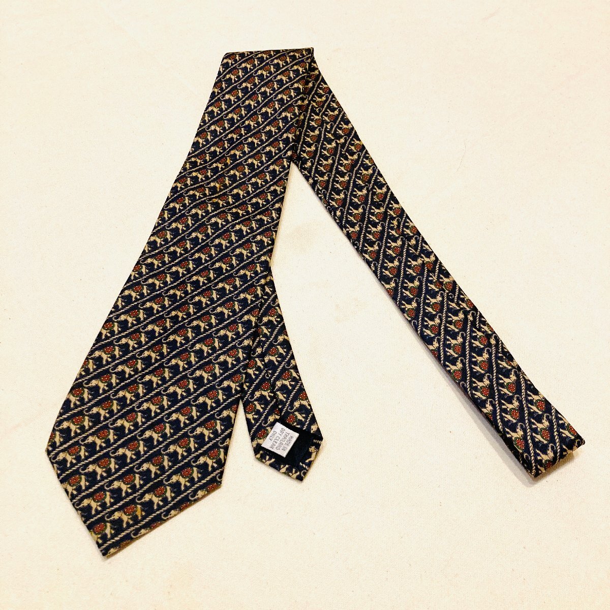 JIM THOMPSON ジムトンプソン タイ製 絹 シルク SILK 100% 高級 ネクタイ ネイビー系 アニマル柄 象 総柄