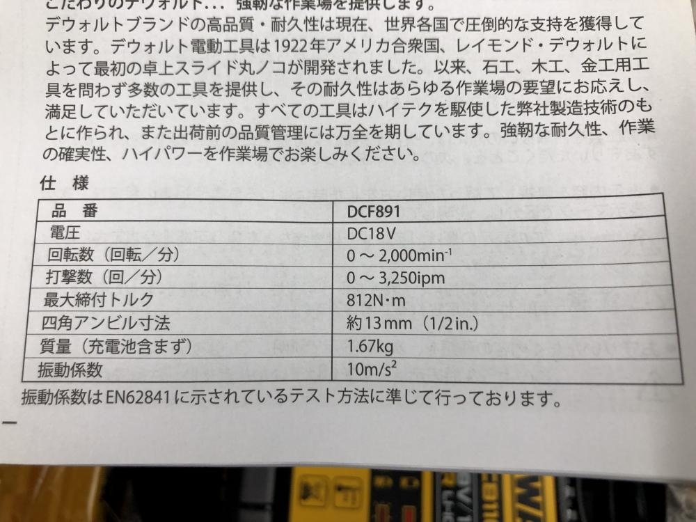 DEWALT ■商品名 コードレスブラシレスインパクトレンチ ■型番 DCF891P2T バッテリ2個 |