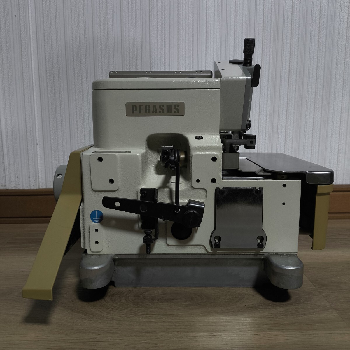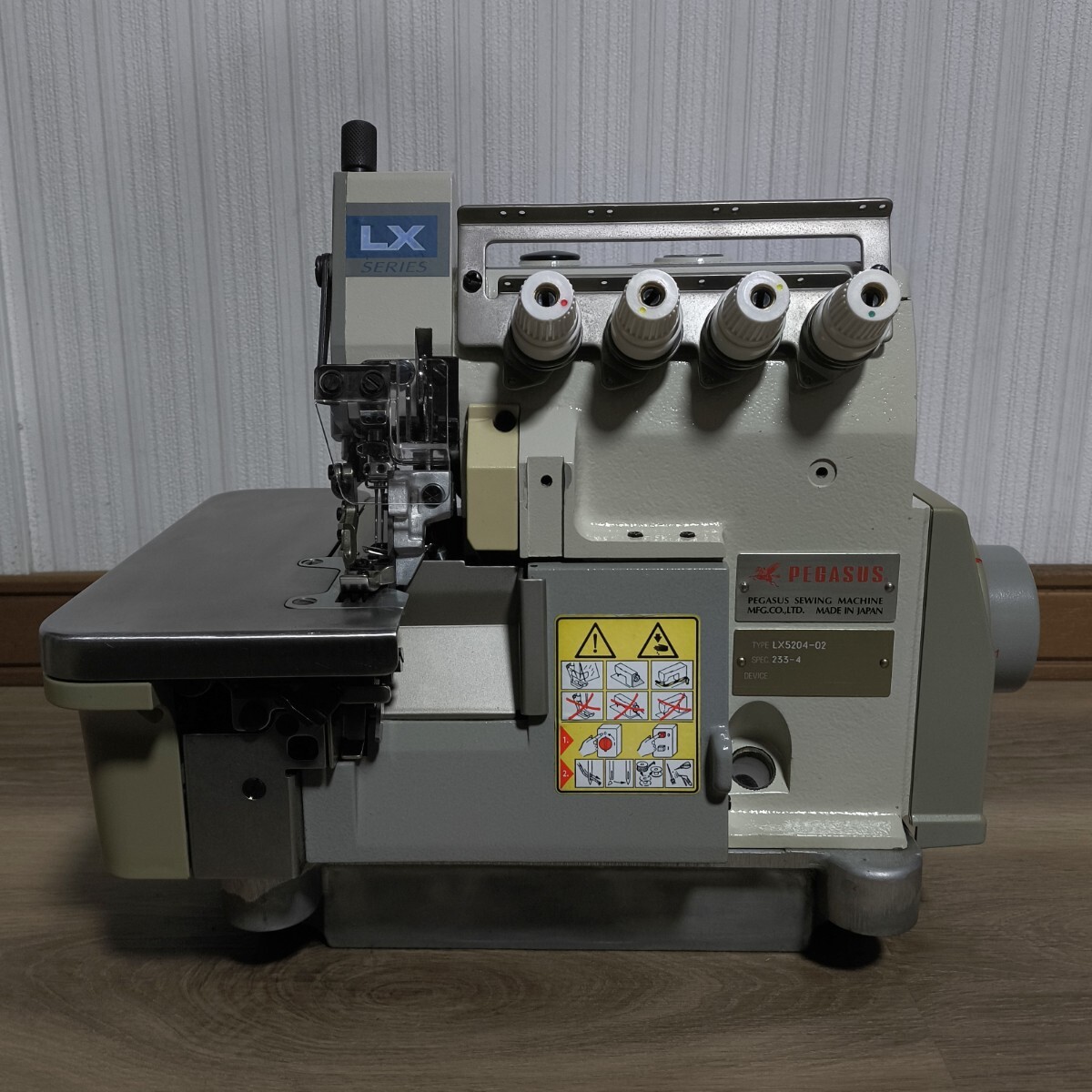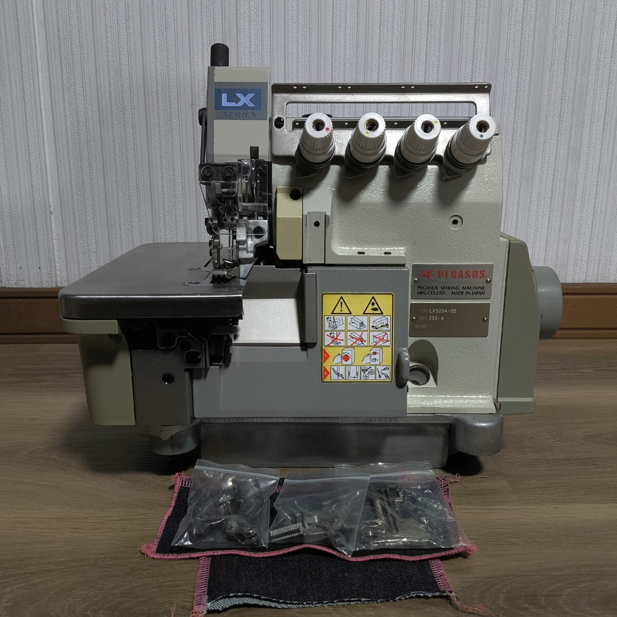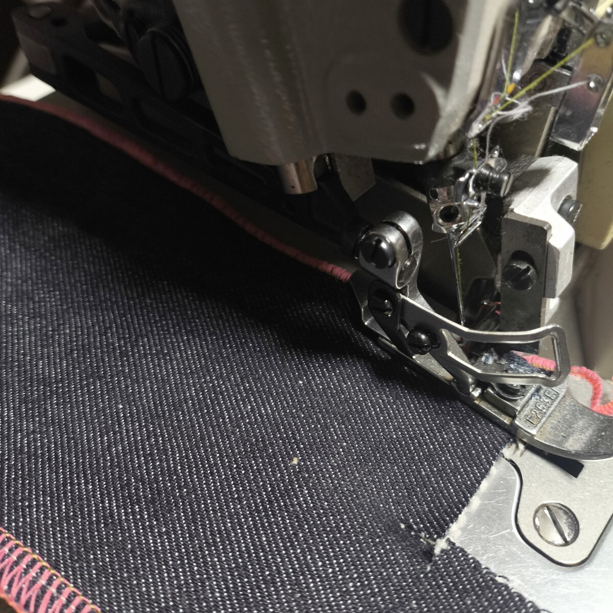 もともとは1本針3本糸オーバーロックでしたが2本針4本糸オーバーロックに変更してあります。メローロック(巻きロック)用のゲージセットですので変更すればメローロックミシンとしても使用できます。