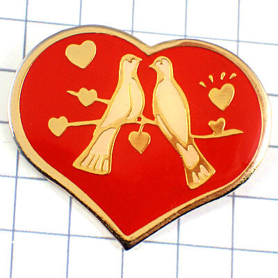 | "ピンバッジ・赤いハート鳩のカップル二羽"の商品説明 | |