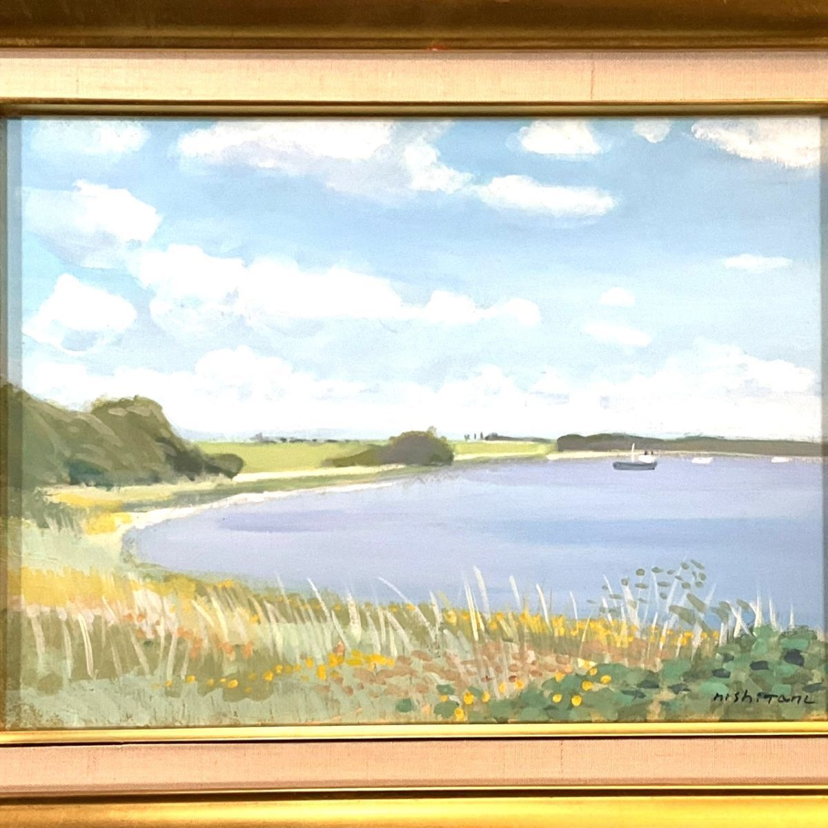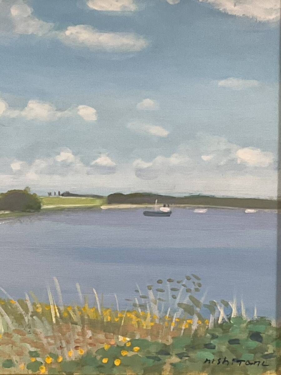 真作■油彩■西谷勝輝■『白い雲・デンマーク』■柔らかな色合いの逸品■在仏実力作家■人気作家■額付絵画