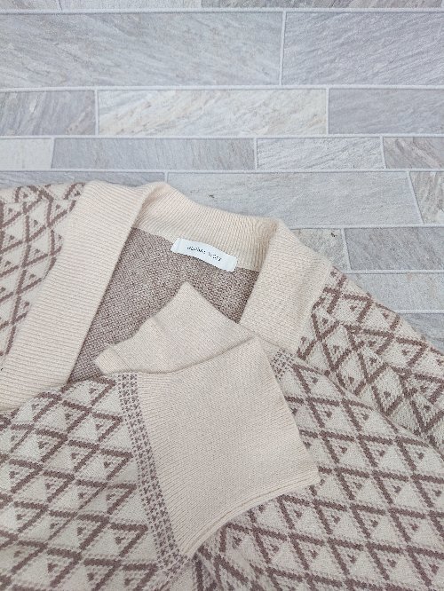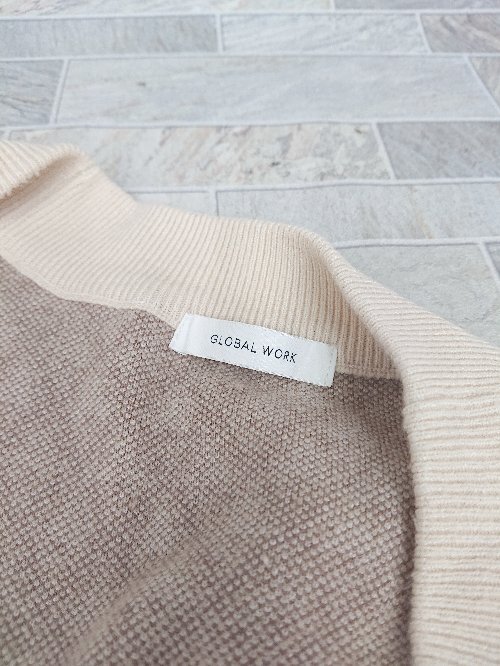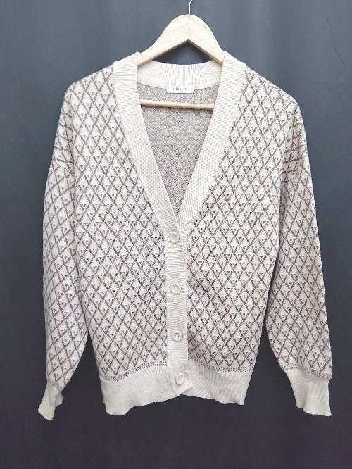 ◇ GLOBAL WORK グローバルワーク 総柄 長袖 ニット カーディガン サイズF ベージュ ブラウン レディース メンズ P