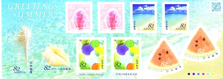 「Greetings Summer」の記念切手です (82円切手X10枚)。送料は普通便110円(郵送 複数落札でも同一料金)になります。