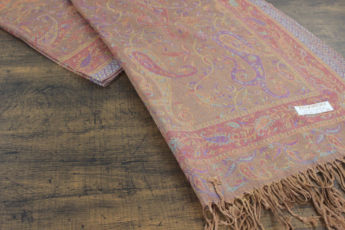 新品【パシュミナ Pashmina】ペイズリー柄 マルチカラー 大判 ストール カシミア100% Cashmere