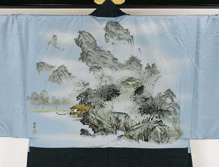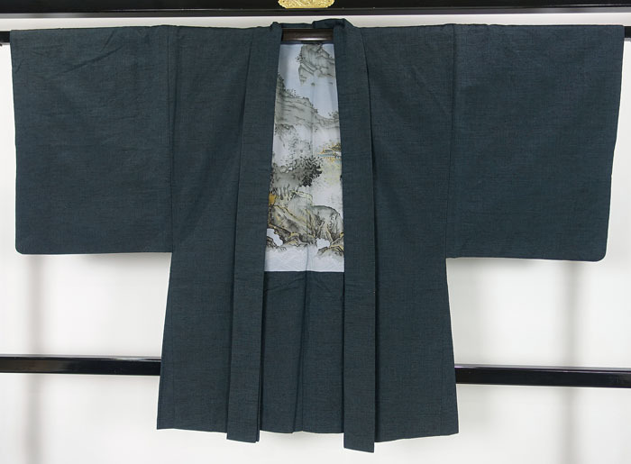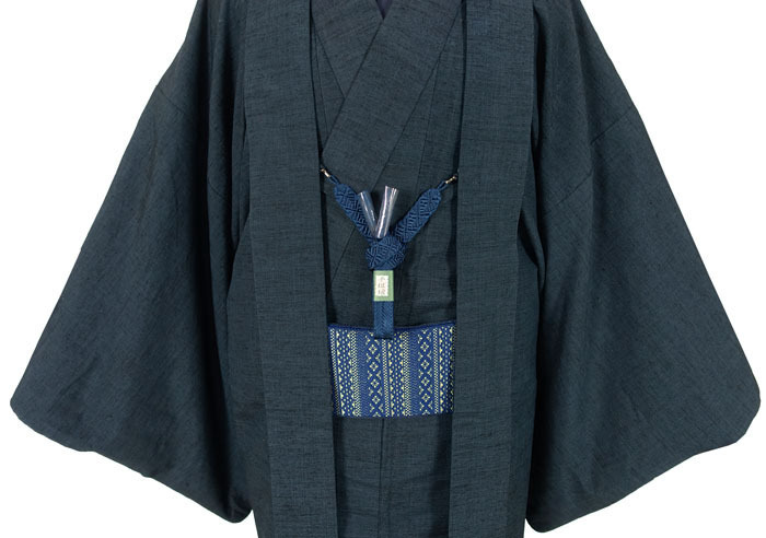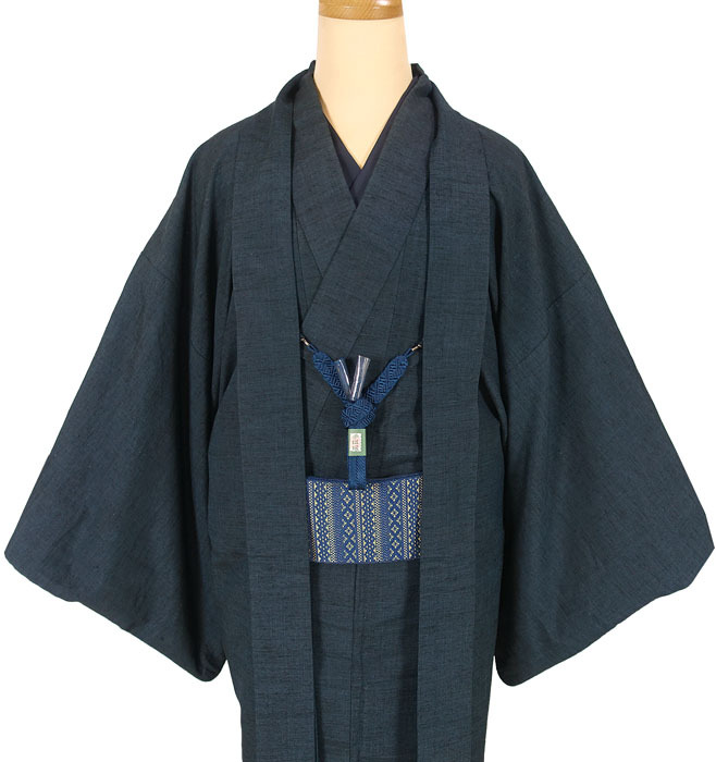 男物 アンサンブル 信州紬系 手紡ぎ 無地 角帯 羽織紐 適応身長164cm位 正絹 12197