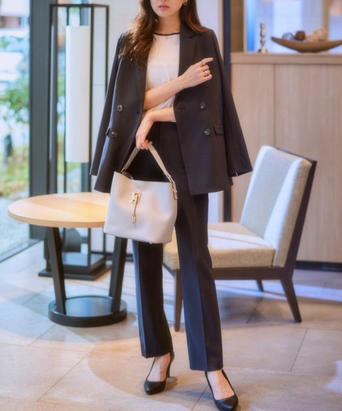 参考商品名:【洗える】うすカルタテヨコストレッチダブルブレストジャケットパンツスーツ(テーラードジャケット+ストレートパンツ)