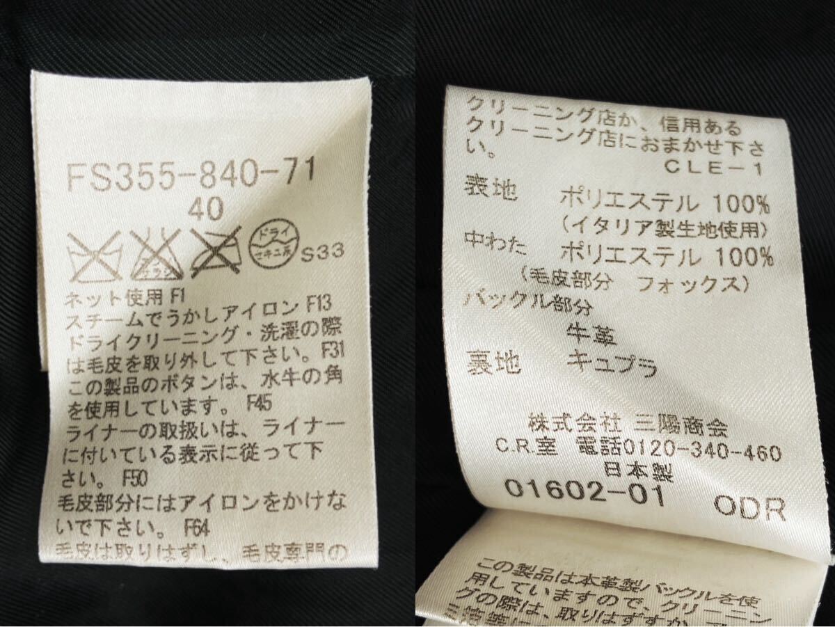 参考価格万 ・定番のアップデート ・上品の最高級 ・カジュアルコーデ抜群 カラー:ブラック系 サイズ:40 着 丈:約94cm 身 幅:約47cm 肩 幅:約40cm 袖 丈:約59cm ※サイズ表記に関しては製造国によって違いがあります。平置きでの実測値を参考にしてください。 【素 材】表地:ポリエステル 【ランク】5~4 【状態】綺麗 5 数回使用程度の超美品 4 多少の傷・汚れがあるが程度良好の美品 3 一般的な使用感のあるお品 2 傷・汚れがあり使用感を感じるUSED品 1 傷・汚れなどが多く見受けられる 平置きで直線でしているおります。多少の誤差はご容赦ください |
