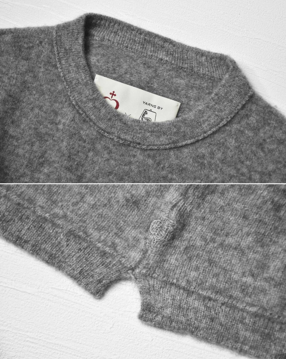 ベーシックなデザインのカシミアセーターも、サイド スロープ得意の遊び(加工)を加えることで、唯一無二の仕上がりに。 とろけるような柔らかさに加え、体を包み込む安心感と暖かさに満たされる。 着用する本人を幸せな気持ちにさせる、ヒーリングアイテム。見た目もモヘアニットのような温かみのある風合いで どこか肩の力が抜けている感を醸しているのも、ココンチの成せるワザ。 心地よさに魅了され、ついつい手にしてしまうと思います。カシミア本来の心地よさ、ご賞味くださいませ!!