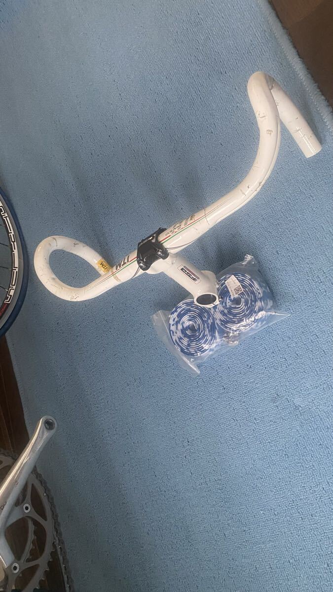 ご心配な方のためにITMのハンドル(420mm)とFSAのステム(100mm)をお付けします。