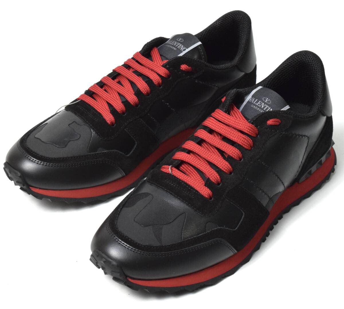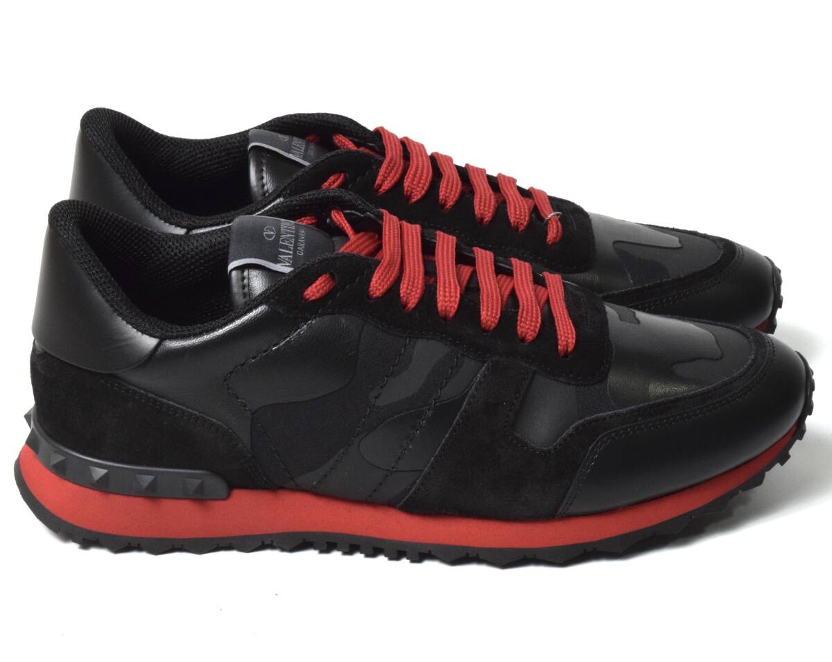 未使用12.7万 VALENTINO ヴァレンティノ ロックランナー スニーカー カモフラージュ 42 ブラック レッド ZY2S0723