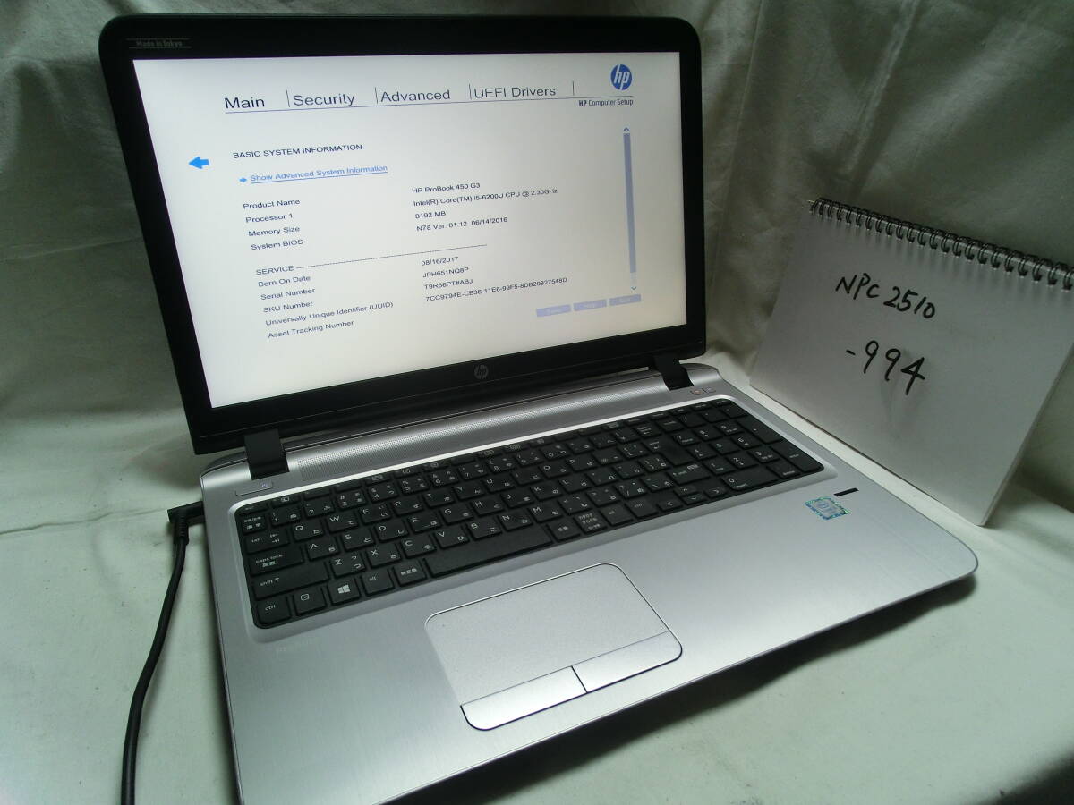 【ジャンク】HP Probook 450 G3(バッテリー不調)/Intel Core i5-6200U/メモリ8GB/ストレージ無/管:NPC2510-994