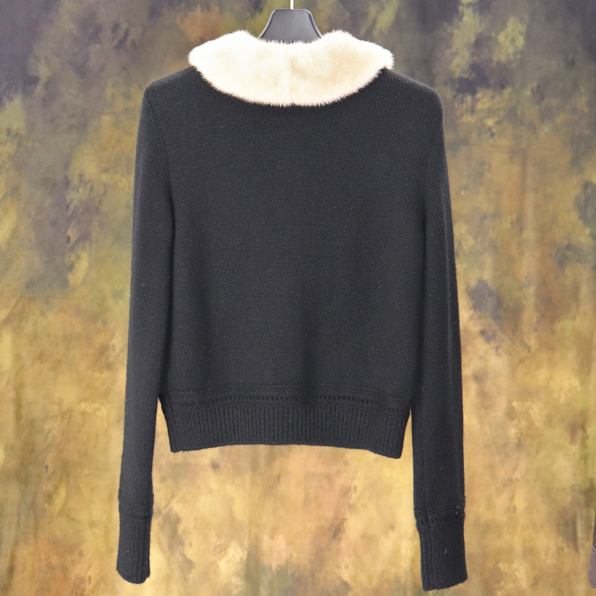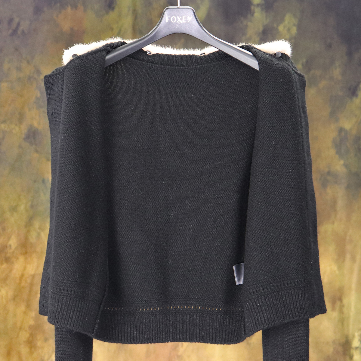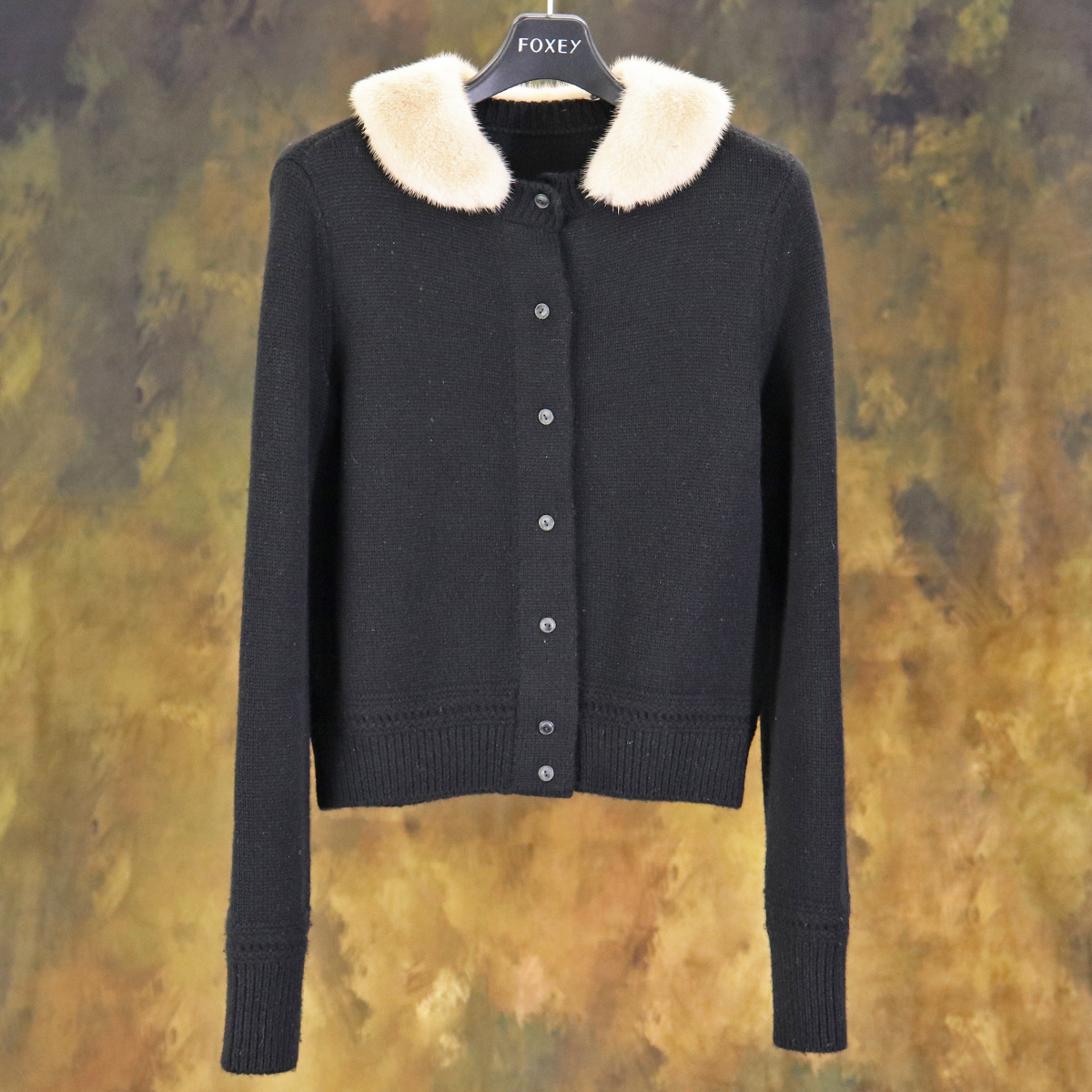 フォクシーブティックのCashmere Whipです。 ブラックブラックにアイボリーのような薄いベージュのミンクが上品で素敵です。 ミンク衿がアクセントになっておりましてとてもお洒落、でミンク衿はお取り外し可能です。 ベースはカシミア100%ですので軽くて暖かく着心地も良いです。 すでに完売のモデルなのでお探しの方も非常に多いかと思います。 |