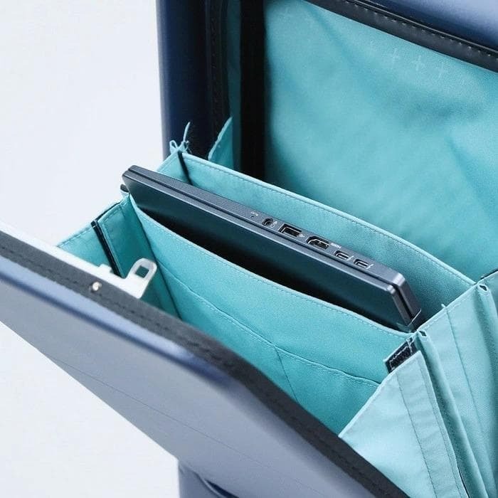 PCや書類、チケットなどを収納整理できるフロントポケット。本体側ファスナーを開けるとメイン気室へアクセス可能。