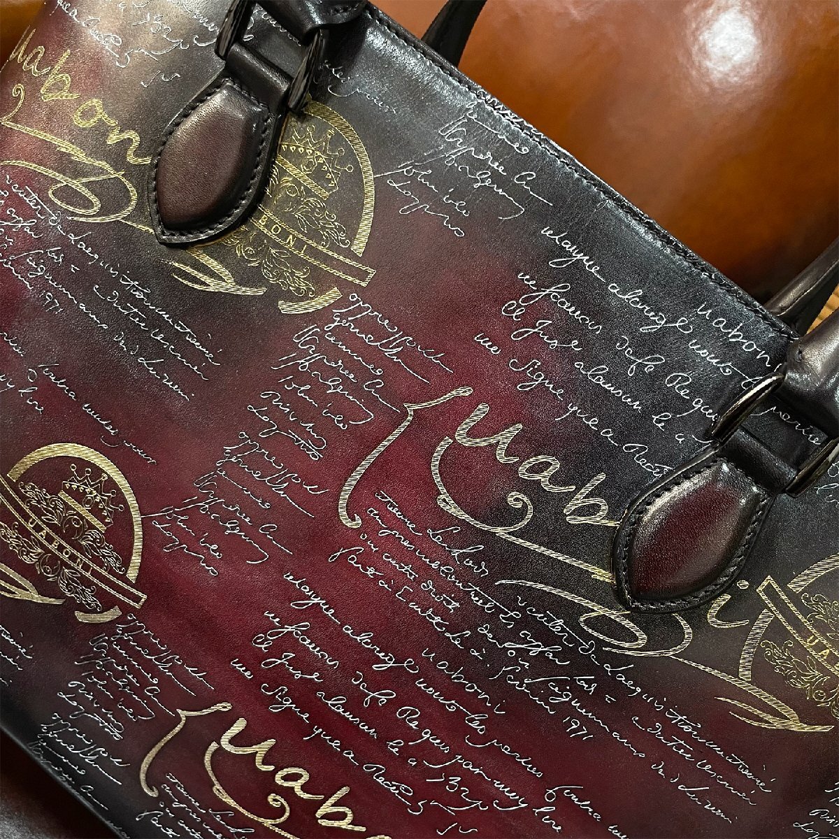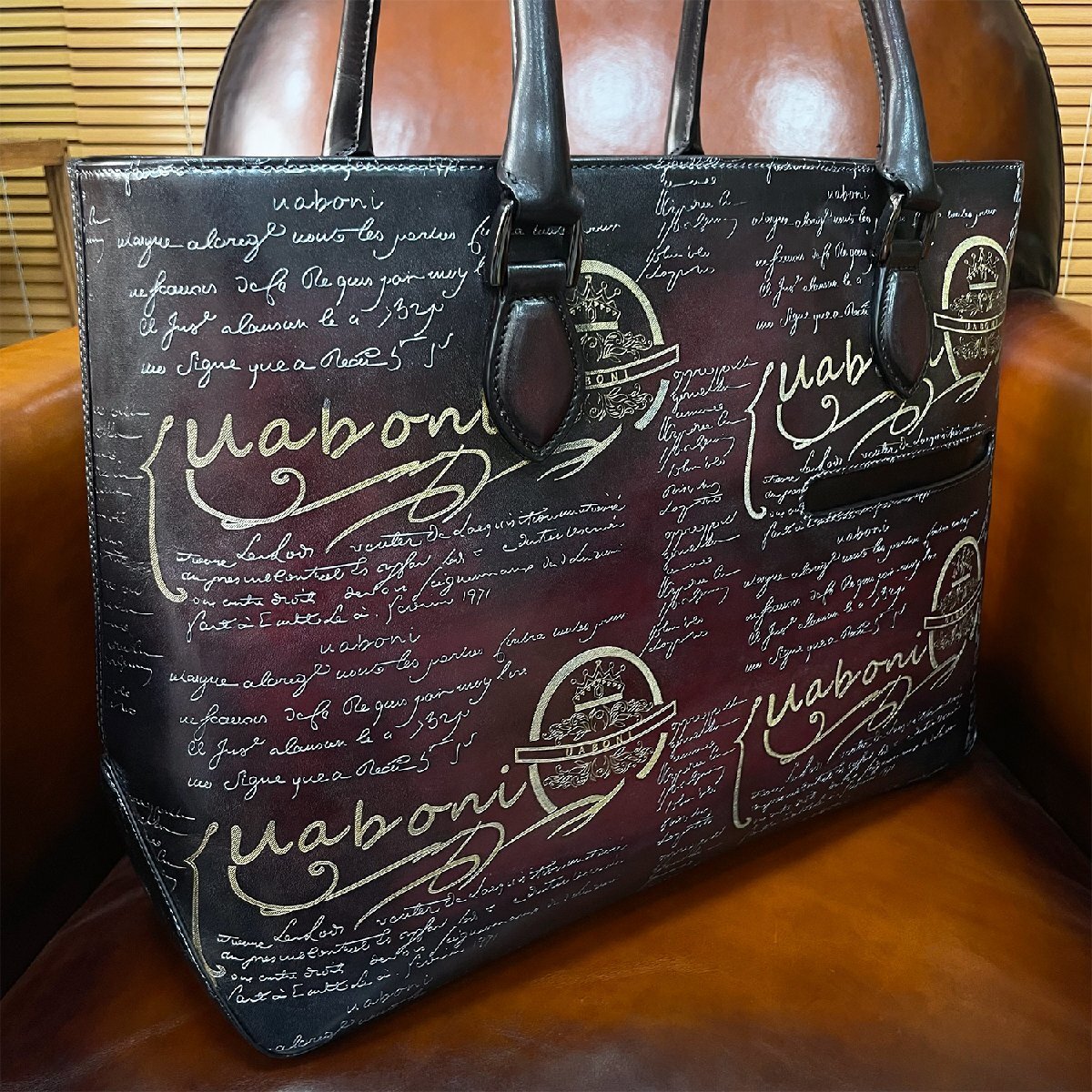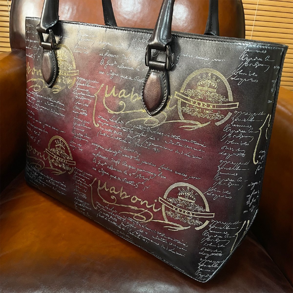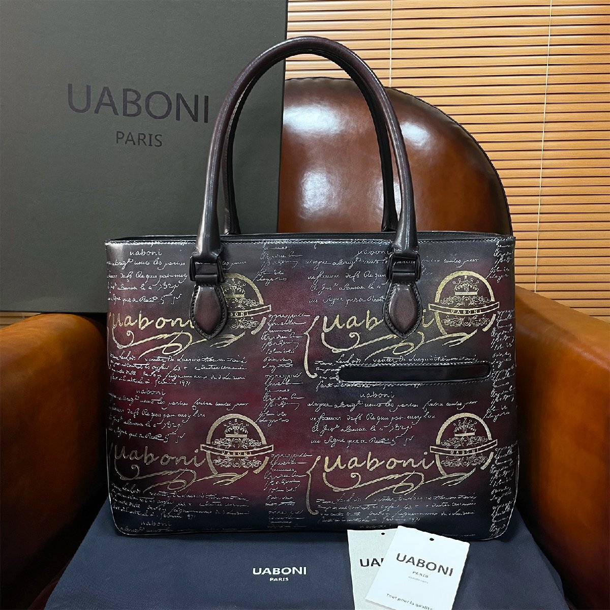 超人気 EU製 定価38万◆UABONI*ユアボニ*幻のパティーヌ*トートバッグ◆絶賛 手染 本革 レザー 絶賛 ビジネスバッグ メンズ ベルルッティ