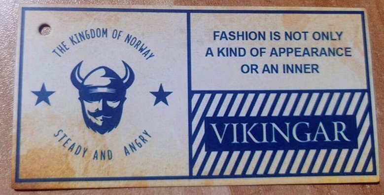 服のタグをカットしていません。(“vikingar”)タグ付きで発送します。
