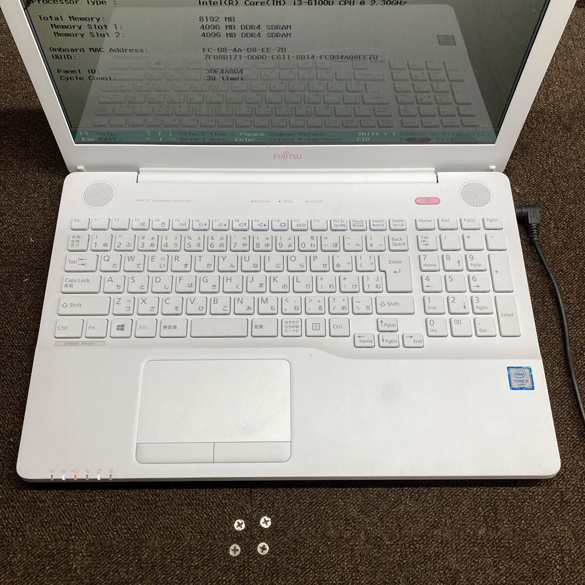 (当方の確認時の事になりますので到着後にBIOS立ち上がり、画面表示、通電などの画像の動作を保証するものではありませんのでご了承下さい)