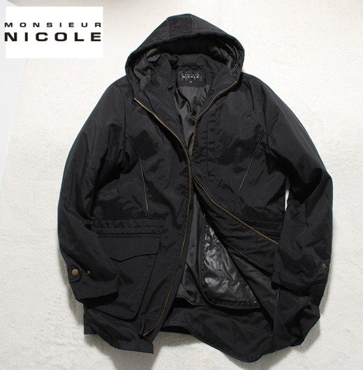 E86■美品/サイズ46★MONSIEUR NICOLEムッシュニコル2way取外しダブルライナーフードジャケットブルゾン