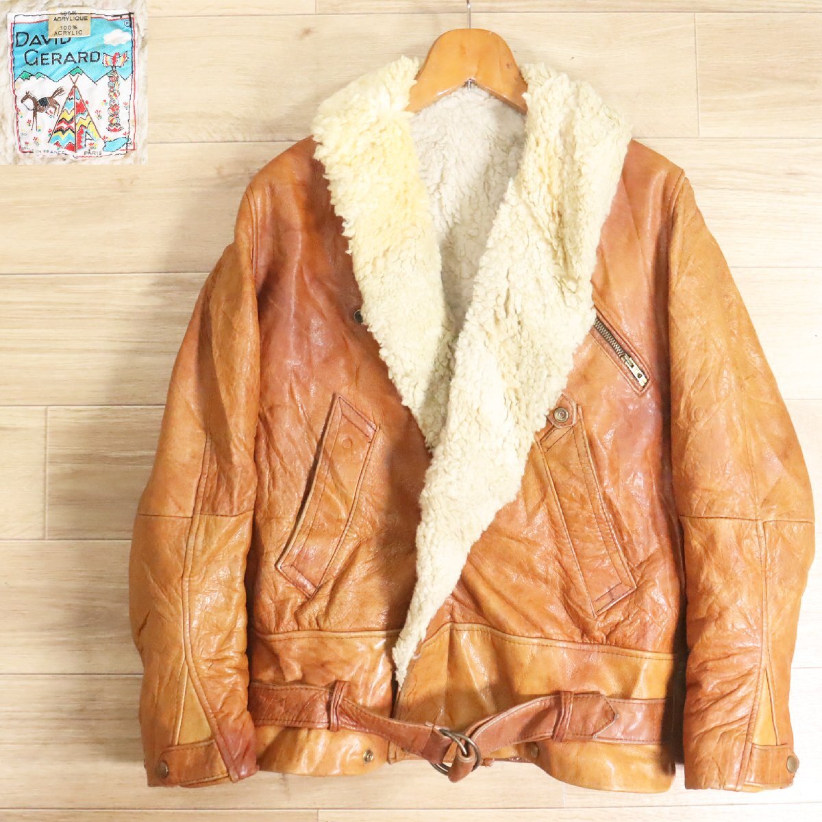 ?6K/Y6.12-8 70s~ ユーロ古着 フランス製 DAVID GERARD レザージャケット レザーフライトジャケット 本革 革ジャン ブルゾン