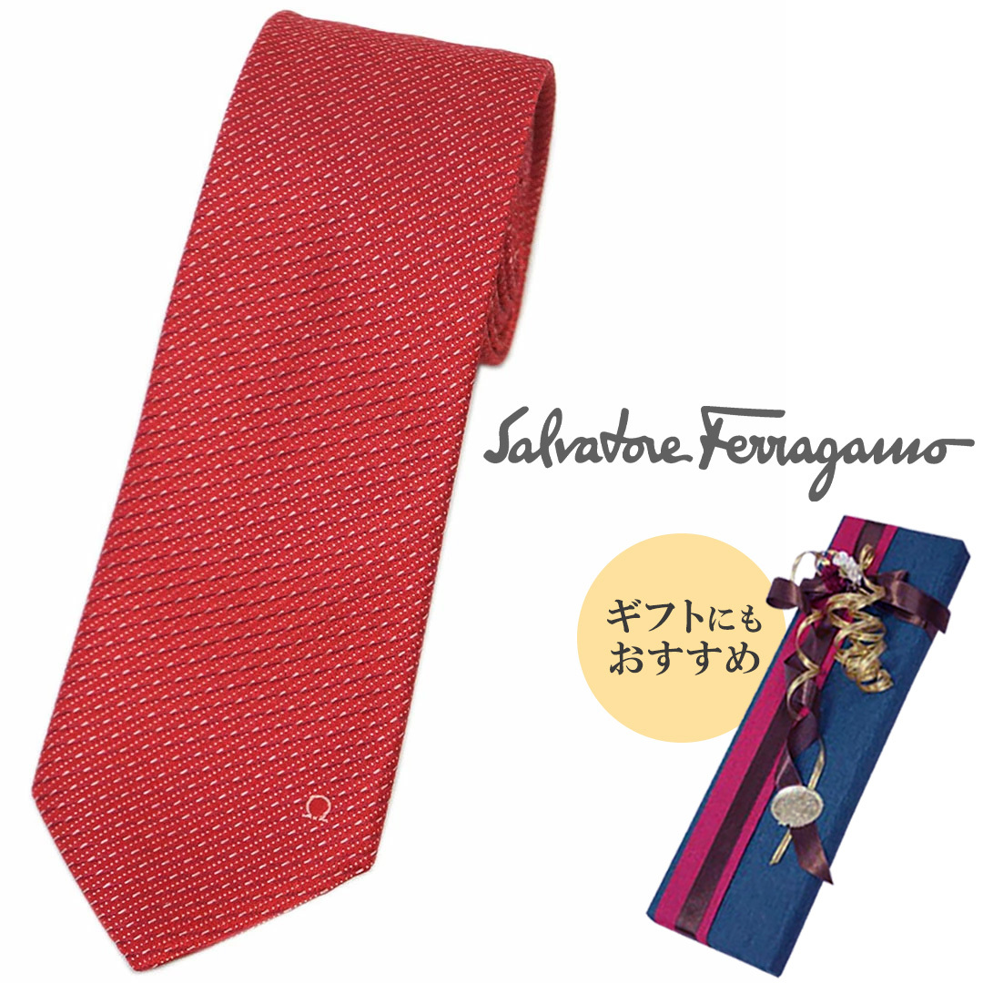 フェラガモ ブランド ネクタイ サルヴァトーレ・フェラガモ シルク 100% ガンチーニ ワンポイント レッド ピンク 赤 31201