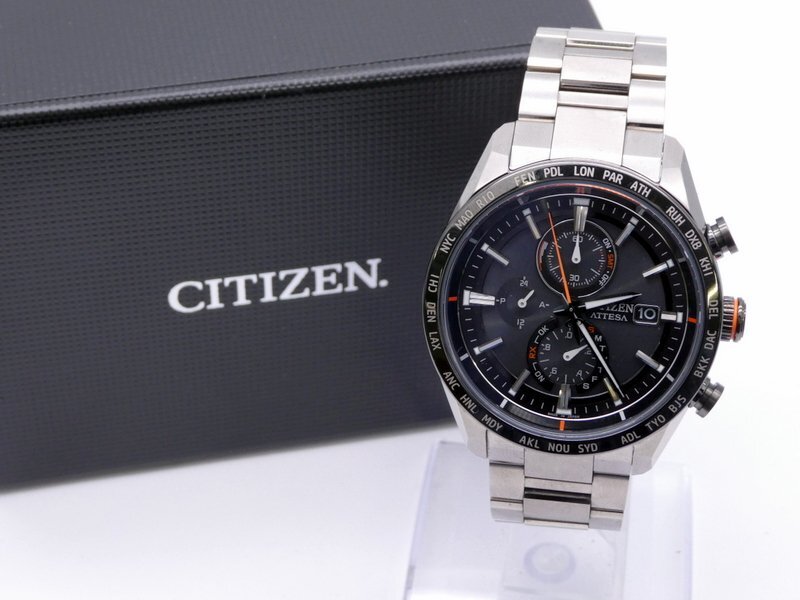 CITIZEN ATTESA アテッサ H800-A1CN206 エコドライブ 電波ソーラー ブラック文字盤 付属品有 シチズン 腕時計 1円~ K0480