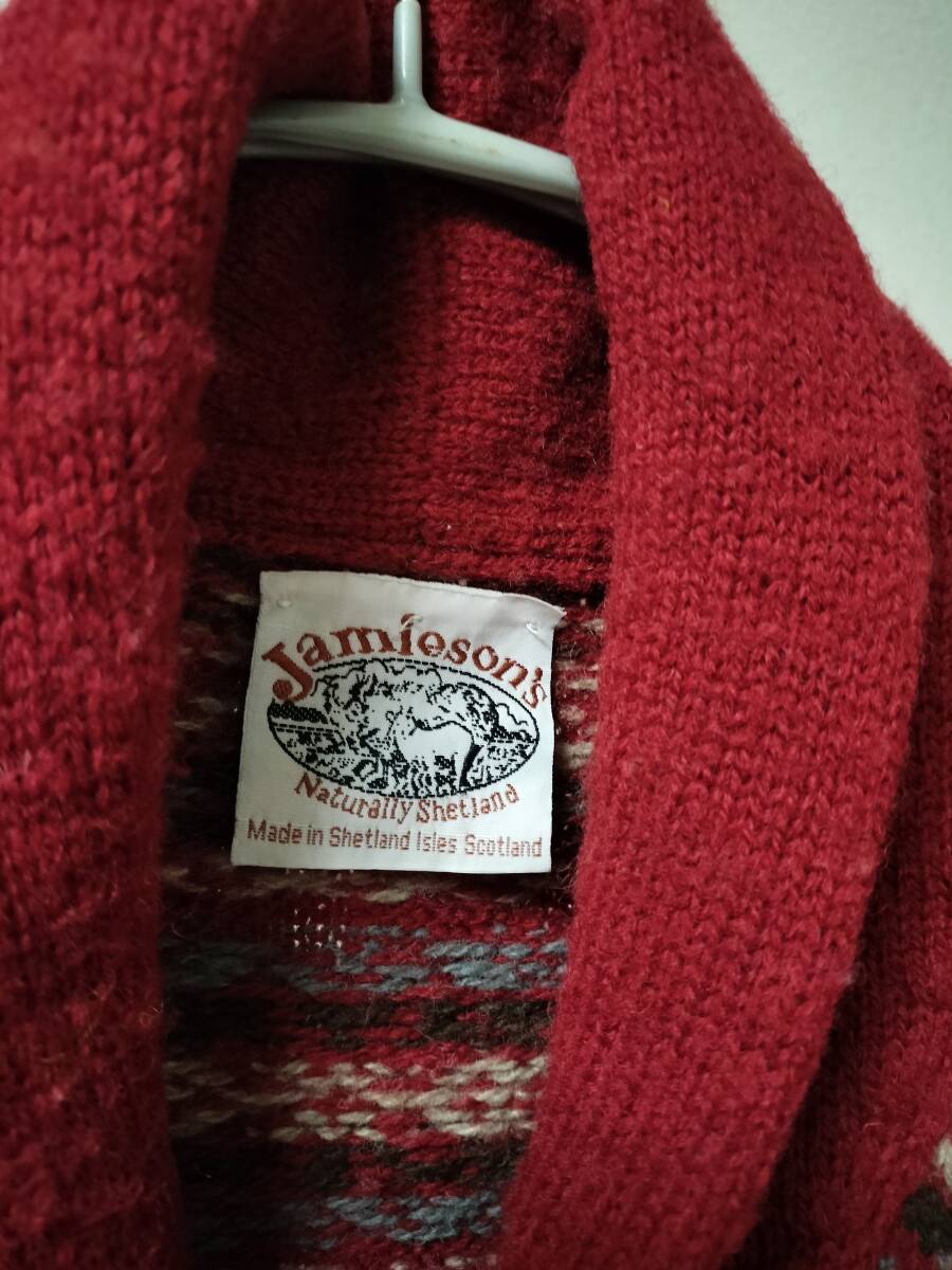 こちらJAMIESON'Sのショールカラーフェアアイル柄ニットカーディガンです。