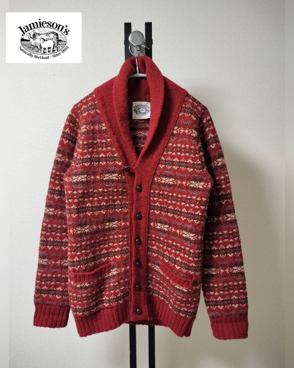 JAMIESON'S/ジャミーソンズ/ショールカラーフェアアイル柄ニットカーディガン/クルミボタン/スコットランド製/高級シェットランドウール