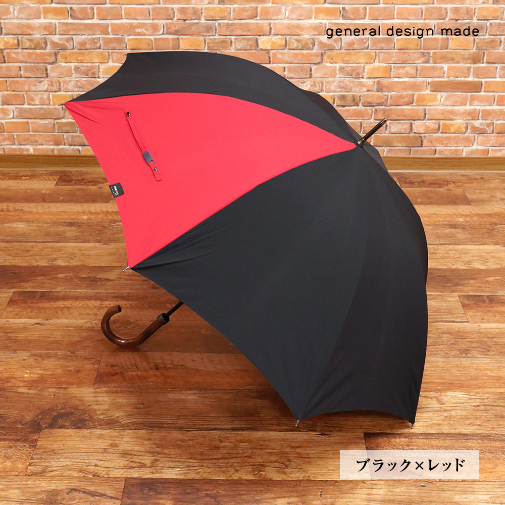 1円/general design made/コーデュラ 長傘 日本製 UVケア 雨晴兼用 65cm ジェネラルデザインメイド 新品/ブラック×レッド/jh320/