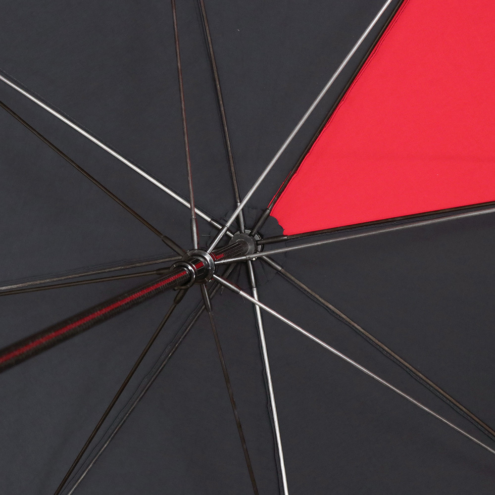 強度と耐久性に優れたインビスタ社のCORDURA(コーデュラ)を使用した長傘。傘を開いた時も畳んだ時も見えるアクセントカラーがポイントです。UVカット加工が施されているので、雨傘としてはもちろん日傘としてもお使いいただけます。