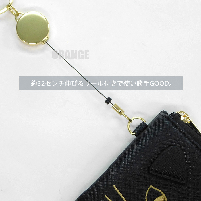 送料無料 猫 ネコ フェイス刺繍 リール付き パスケース レディース キッズ カードケース 定期入れ 小銭入れ コインケース 猫グッズ 黒★