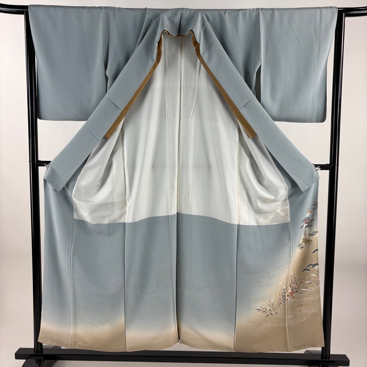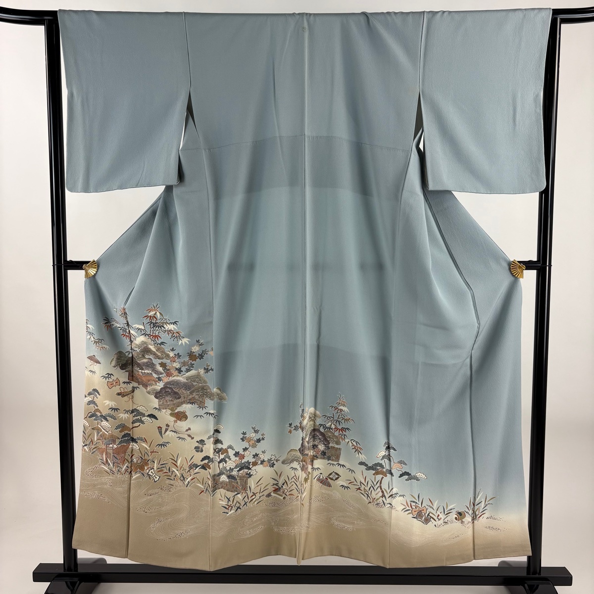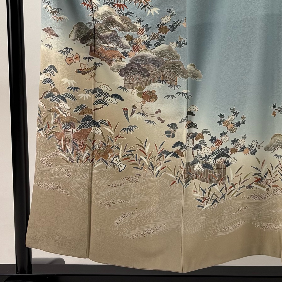| 色留袖 秀品 宝尽くし 家屋 刺繍 金糸 水色 袷 身丈154 裄丈63.5 S 正絹 【中古】 |