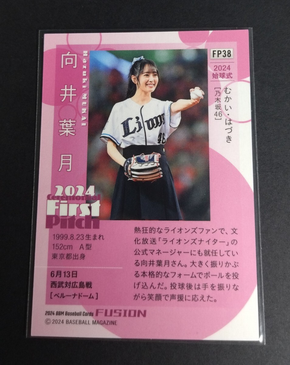2024年BBM FUSION 向井葉月(乃木坂46)First Pitch!始球式カード。西武vs広島戦ベルーナドーム。No,FP38。