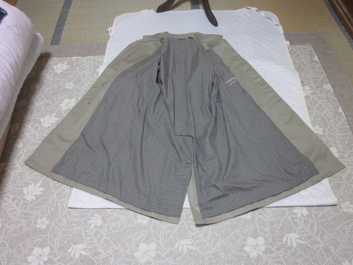 ・格子チェックの裏地が付いています。あくまでも個人的な主観ですが真冬シーズンよりも春先や晩秋シーズンに最適に感じます。素材はポリエステル65%・コットン35%です。ビジネスシーンに最適です。ラグラン袖仕様です。約41CMのボタン付きセンターベント仕様です。身幅サイズは脇下部より下方向に僅かですが広くなる仕立てです。