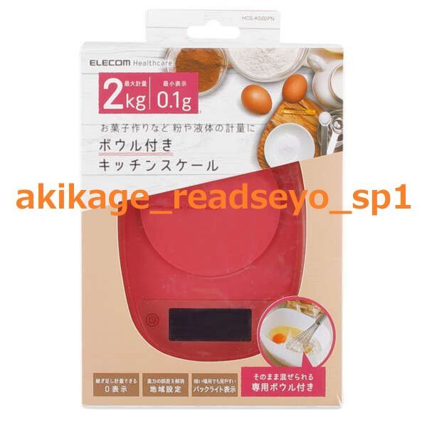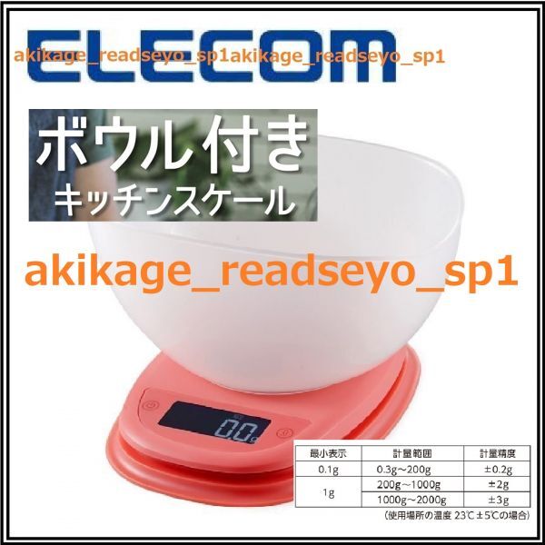 ELECOM エレコムボウル付 キッチン スケール/計量器/最小0.1g単位まで計量 バックライト付/ピンク/お試し用乾電池単4形2本付 |
