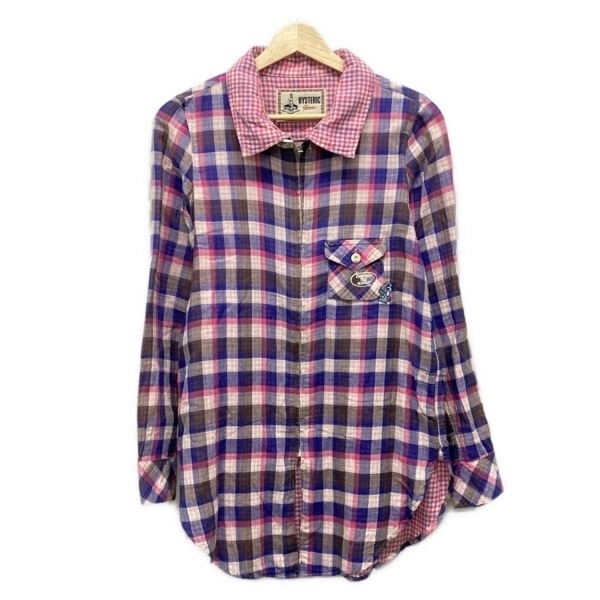 ヒステリックグラマー HYSTERIC GLAMOUR サイズF - ネイビー×ピンク×白 レディース 長袖/ミニ/チェック柄/ジップアップ ワンピース