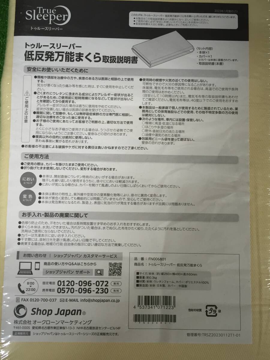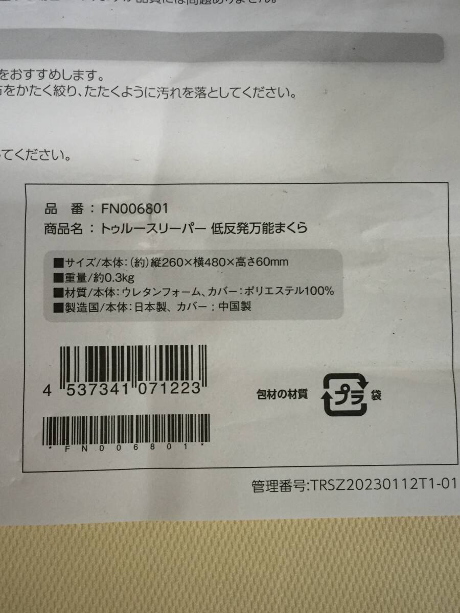 商品名:True Sleeper トゥルースリーパー 低反発万能まくら