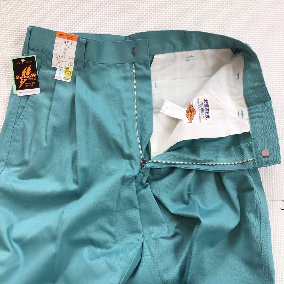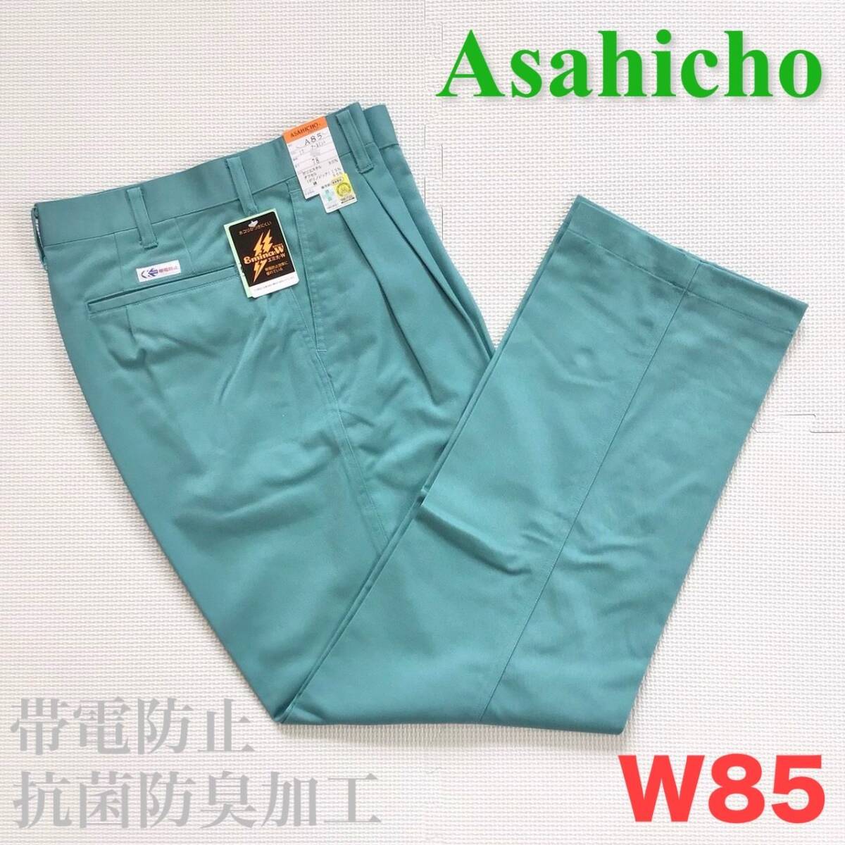 (在庫処分) 新品未使用品 旭蝶 [A85] ワークパンツ サイズ W85 /アースミント/通年/ツータック/帯電防止/ズボン/作業着/ワークウェア