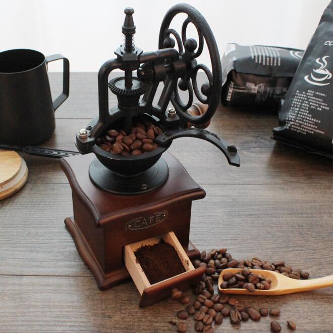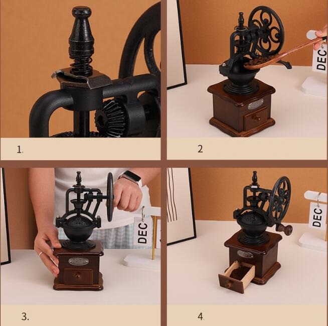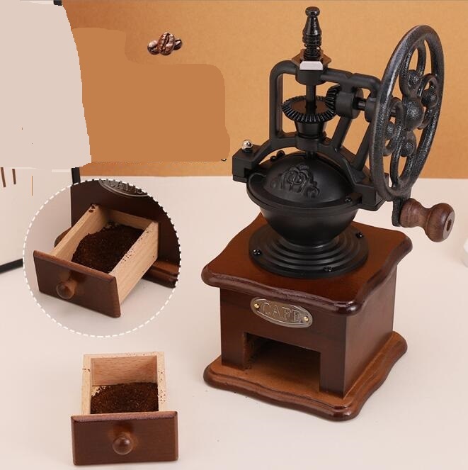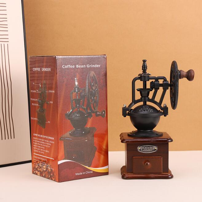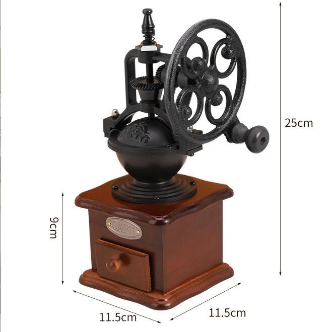 新作手挽き コーヒーミル セラミック刃 手動 家庭用 木製 粗さ調節 レトロ 観覧車式 インテリア