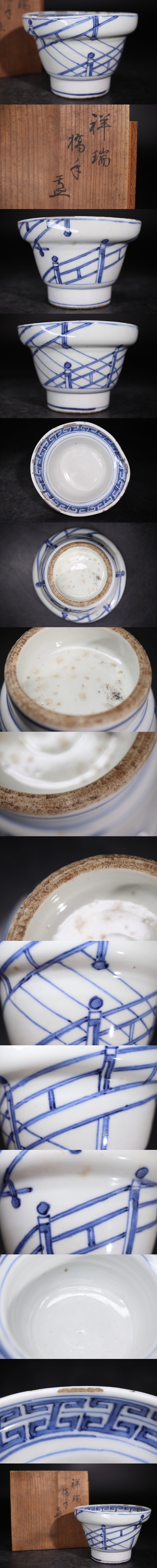 | 「 染付 祥瑞 橋手 鉢 」 木箱付 / 中国美術 清 新渡 茶器 煎茶道具 煎茶飾 .G2596 |