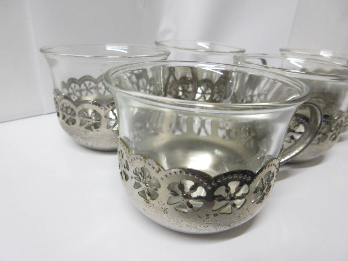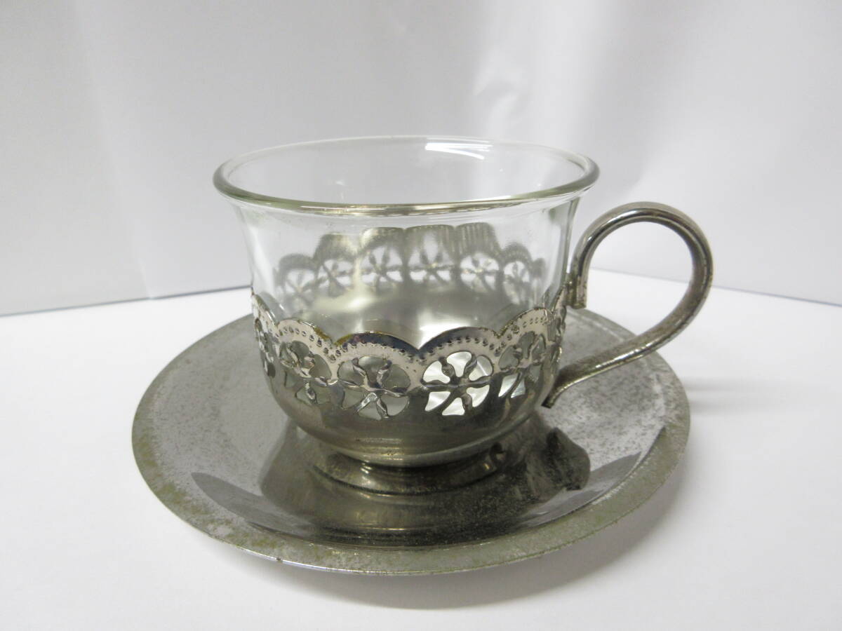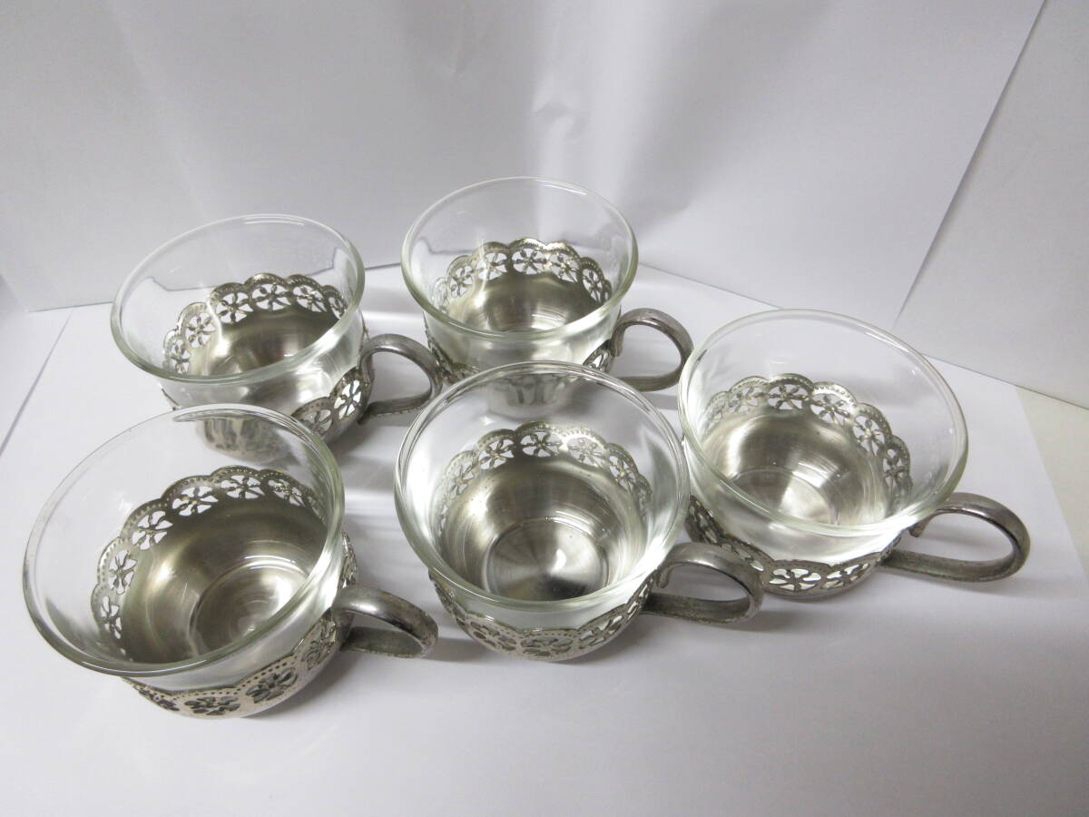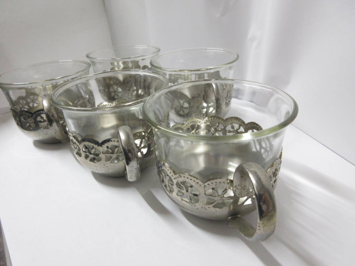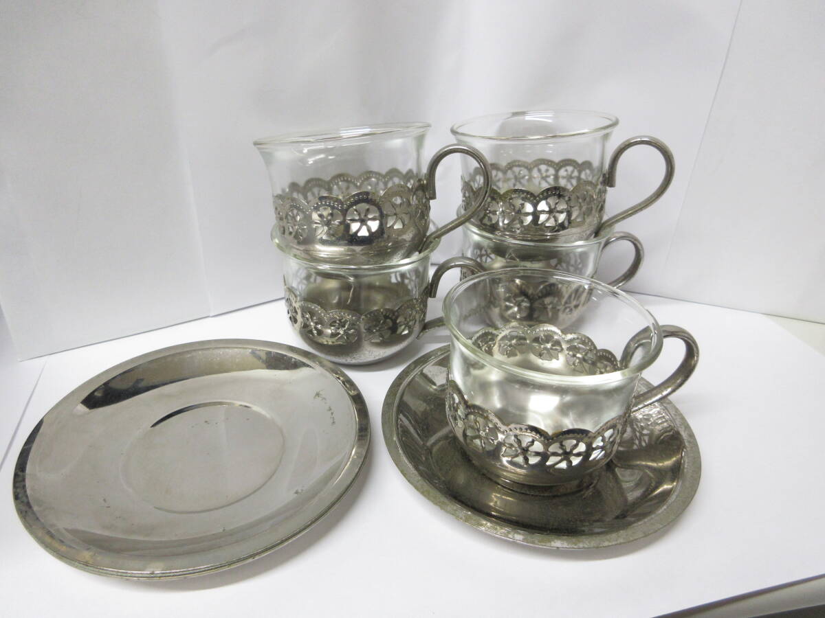 | ☆カップ&ソーサー ガラス&金属製 詳細不明 食器 5客 テーブルウェア 箱無し レトロ アンティーク☆ | ||