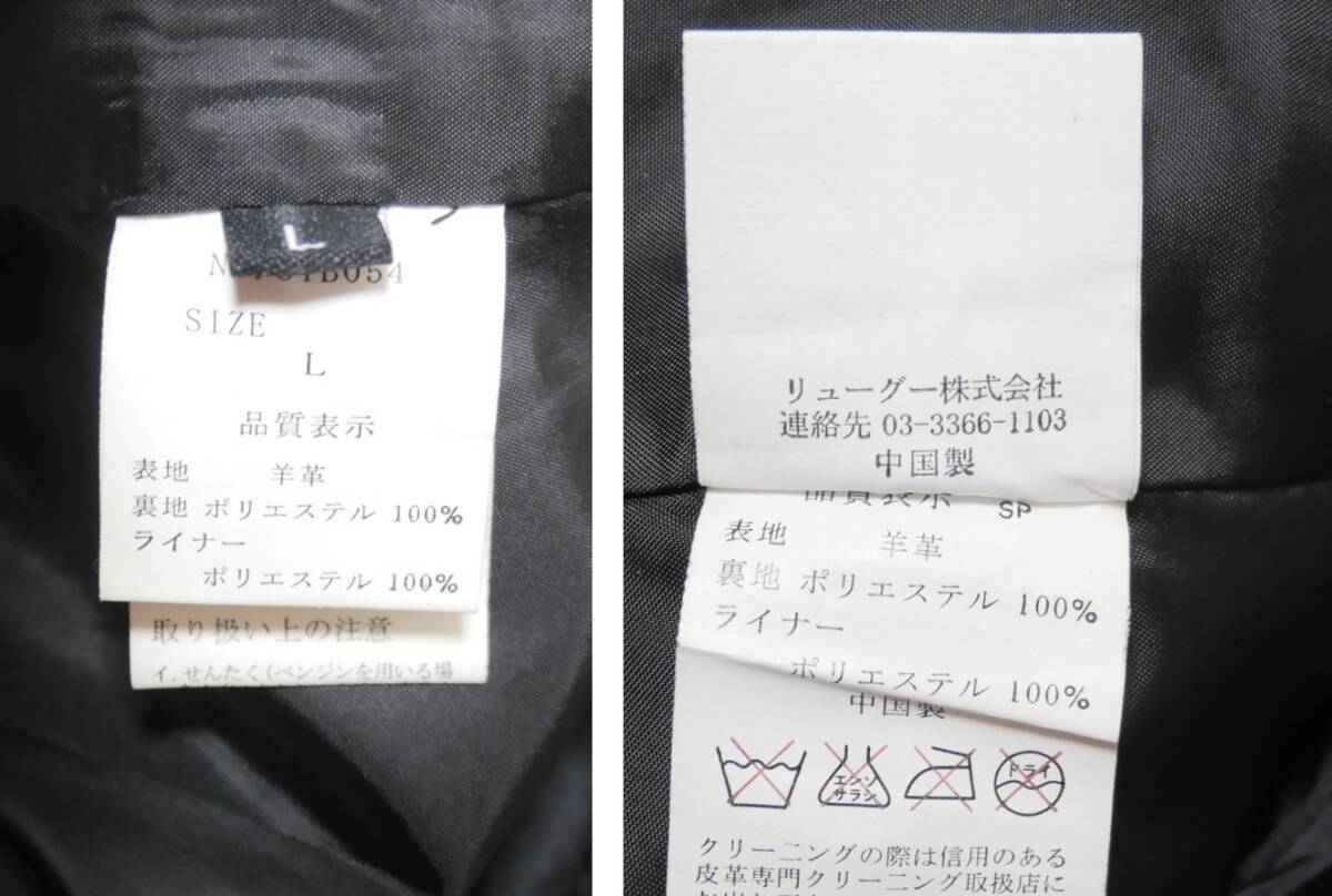 Liugoo Leathers リューグーレザーズ レザーコート 黒 L 羊革