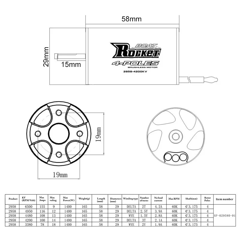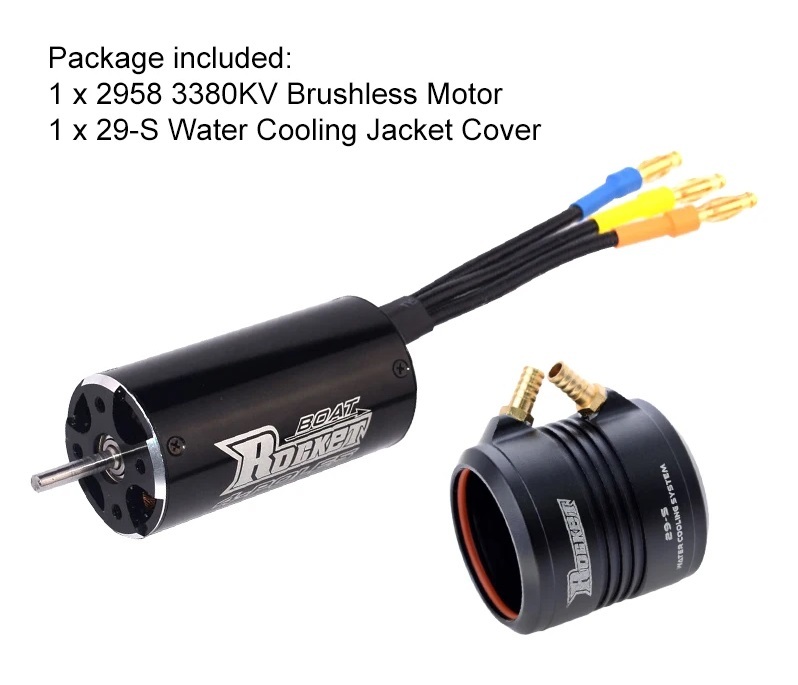 ROCKET-RC 2958 3380KV センサーレス ブラシレスモーターは29-S 水冷ジャケットカバー付きで、600~800mm RC ボートに適しています。
