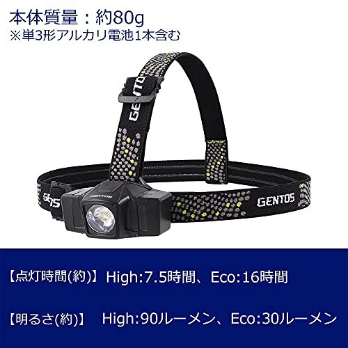 GENTOS(ジェントス) LED ヘッドライト 【明るさ90ルーメン/実用点灯7.5時間/防塵/防滴】 単3形電池1本使用 GD GD-102
