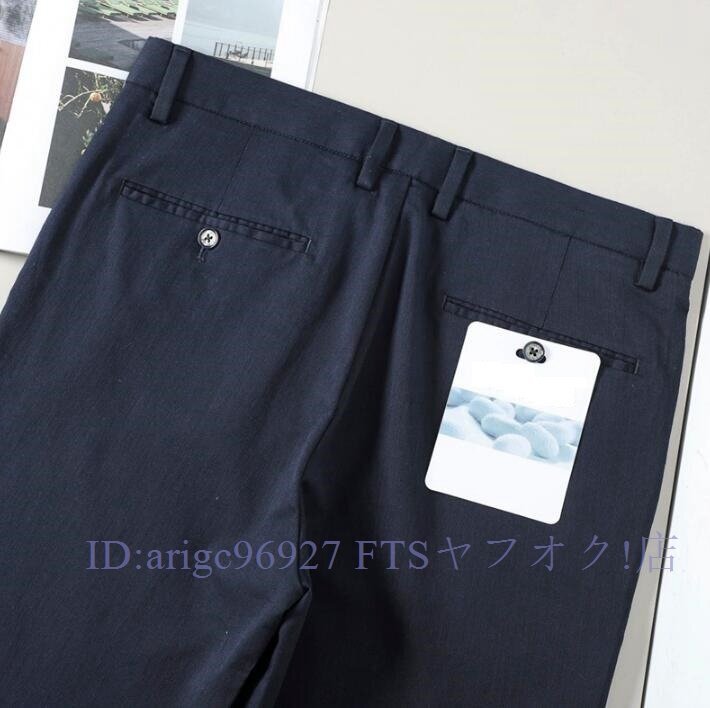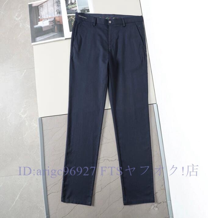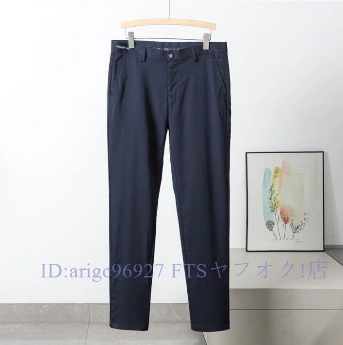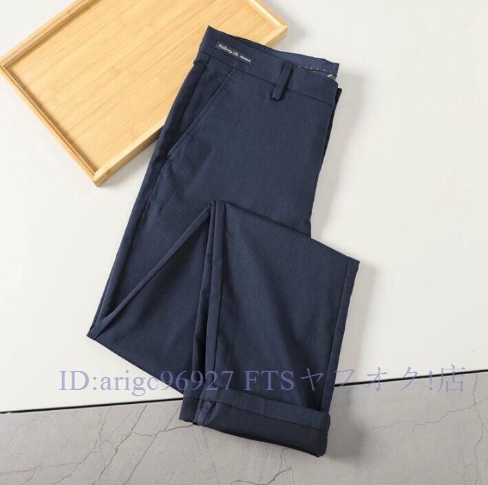 ★新品高級シルク混 メンズ スラックス 柔らかくて滑らか 春夏 ロングパンツ ビジネス ボトムパンツ紺色サイズ選択可