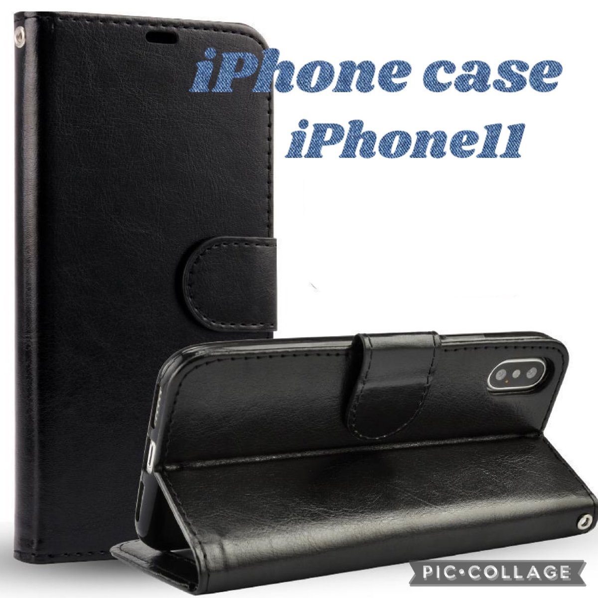 【iPhone11:ブラック】iPhone ケース 手帳型 液晶強化ガラスフィルム 2点 セット 保護フィルム 手帳 カード収納 スマホケース A58