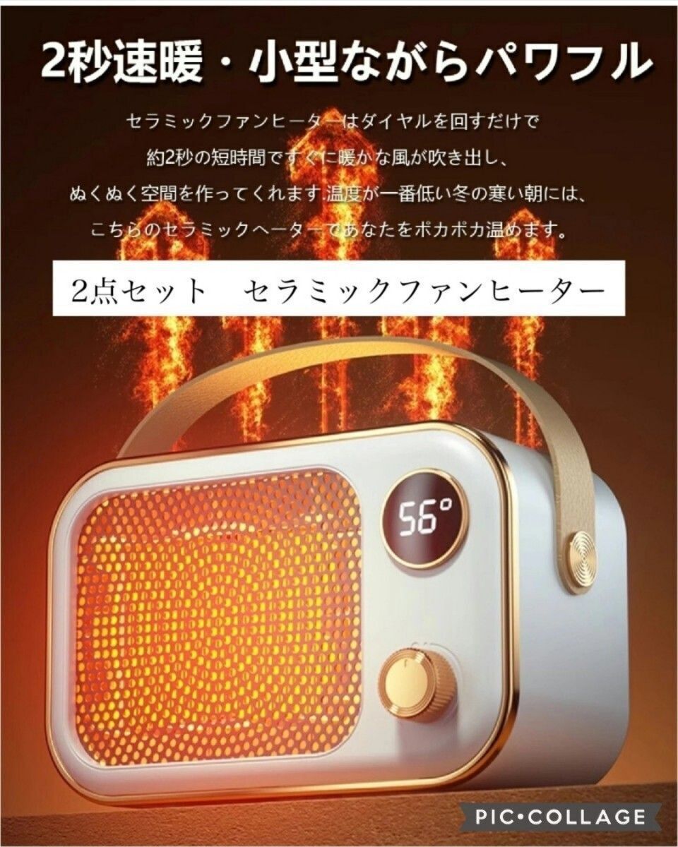 お得な2点セット セラミックファンヒーター2秒速暖 暖房 省エネ2段階温度調整 転倒自動オフ 安心安全のPSE認証済み 高性能