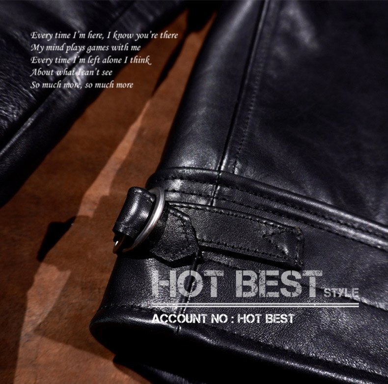 レア 1.5mm 黒芯カウハイド 30年代 トラッカースタイル メンズ シングル ライダース レザージャケット 牛革 Y1189/34【S】