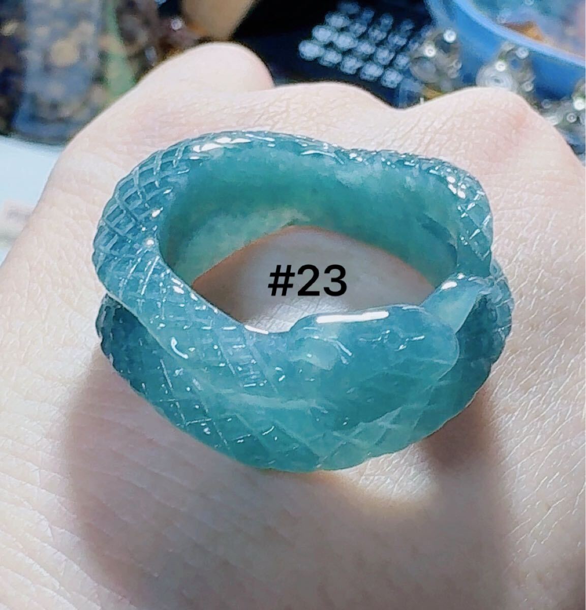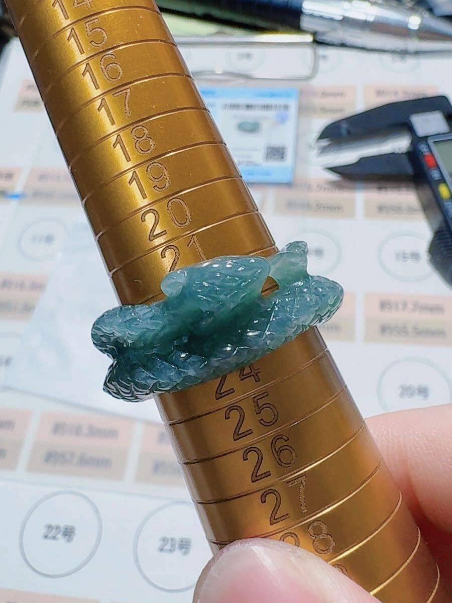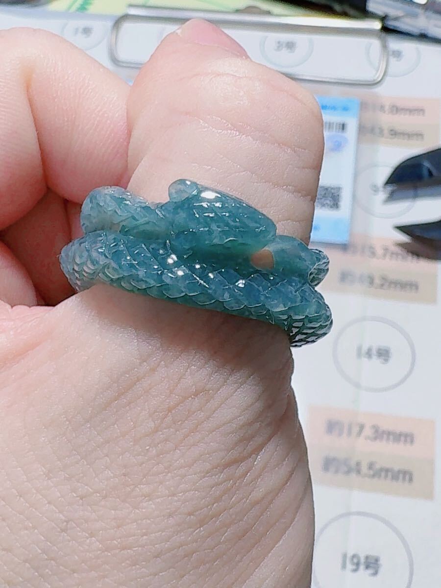 R2-02043天然本翡翠《本物保証》 藍水翡翠 ヘビちゃん指輪約23号 一点物 希少 縁起物 お守り 魔除け 昇進 成功 風水 金運財運幸運 幸福