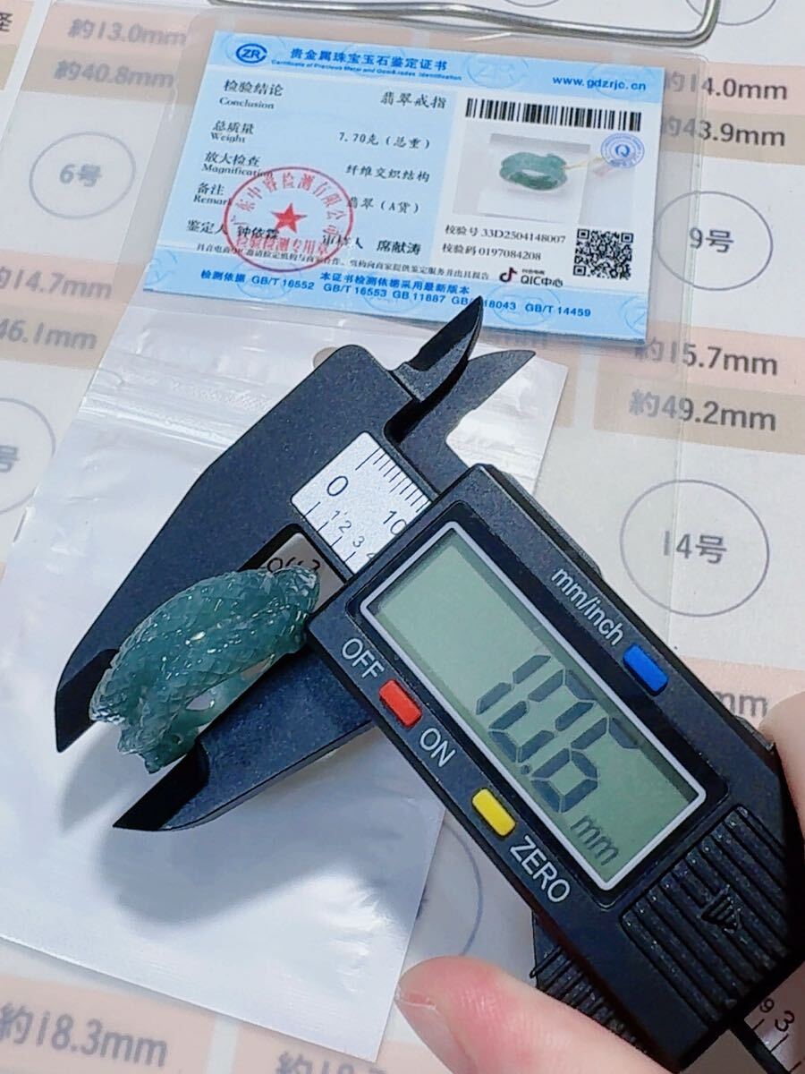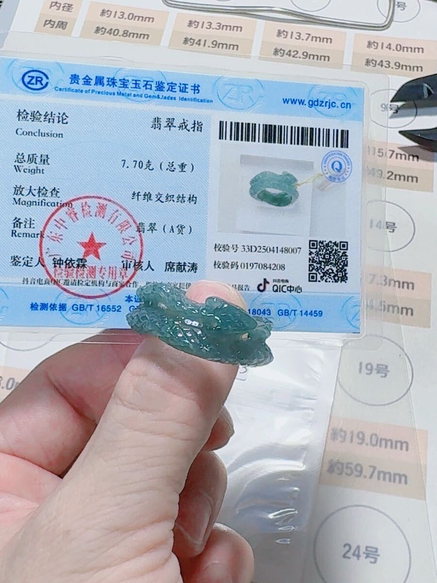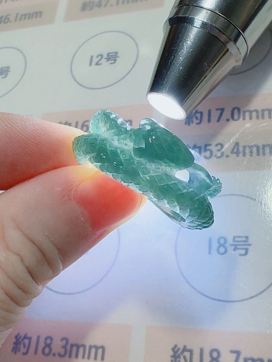 R2-02043天然本翡翠《本物保証》 藍水翡翠 ヘビちゃん指輪約23号 一点物 希少 縁起物 お守り 魔除け 昇進 成功 風水 金運財運幸運 幸福