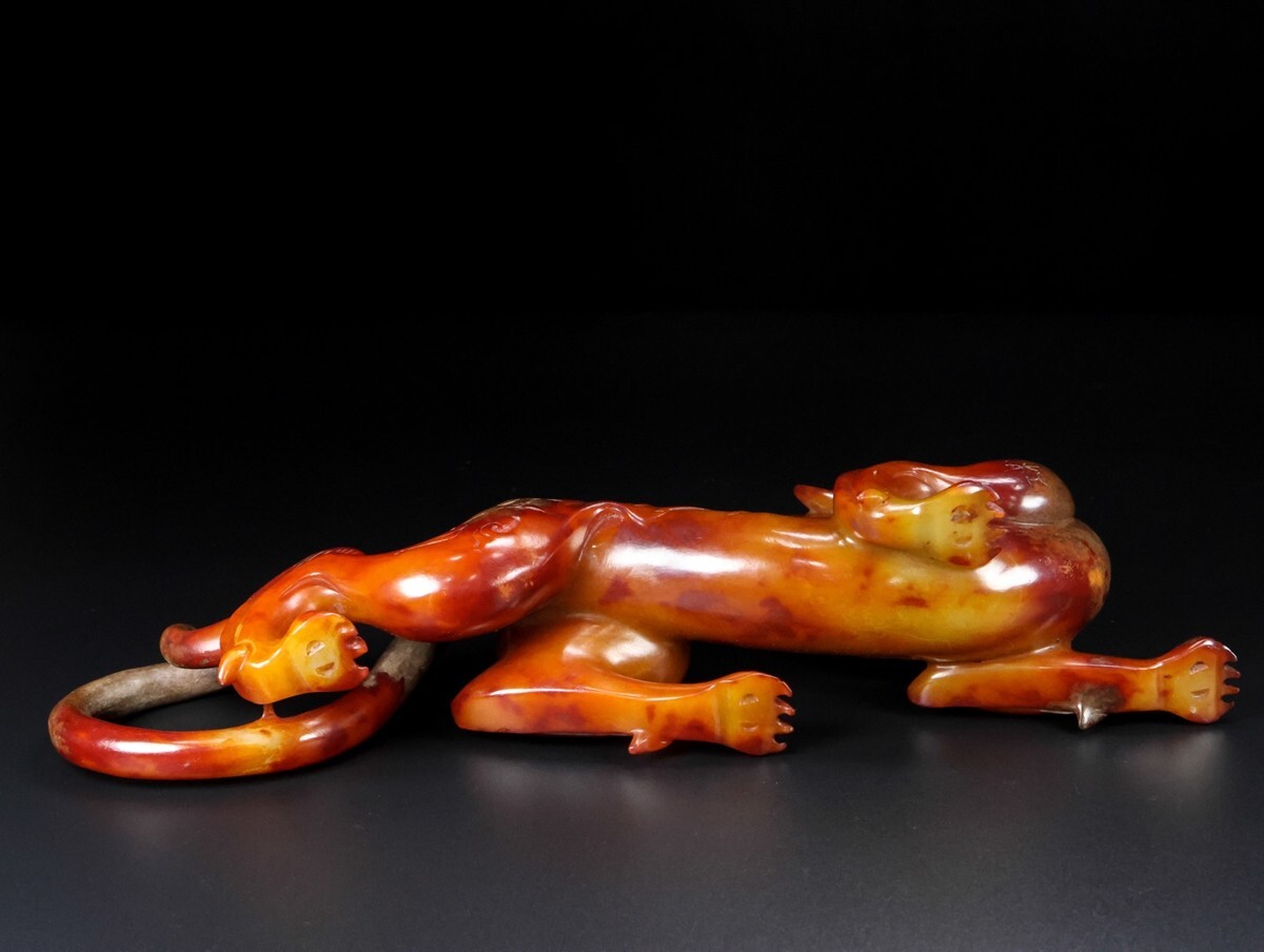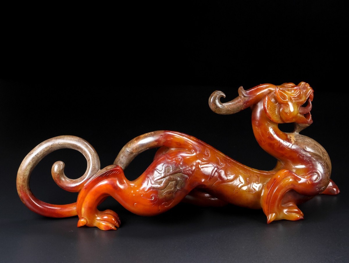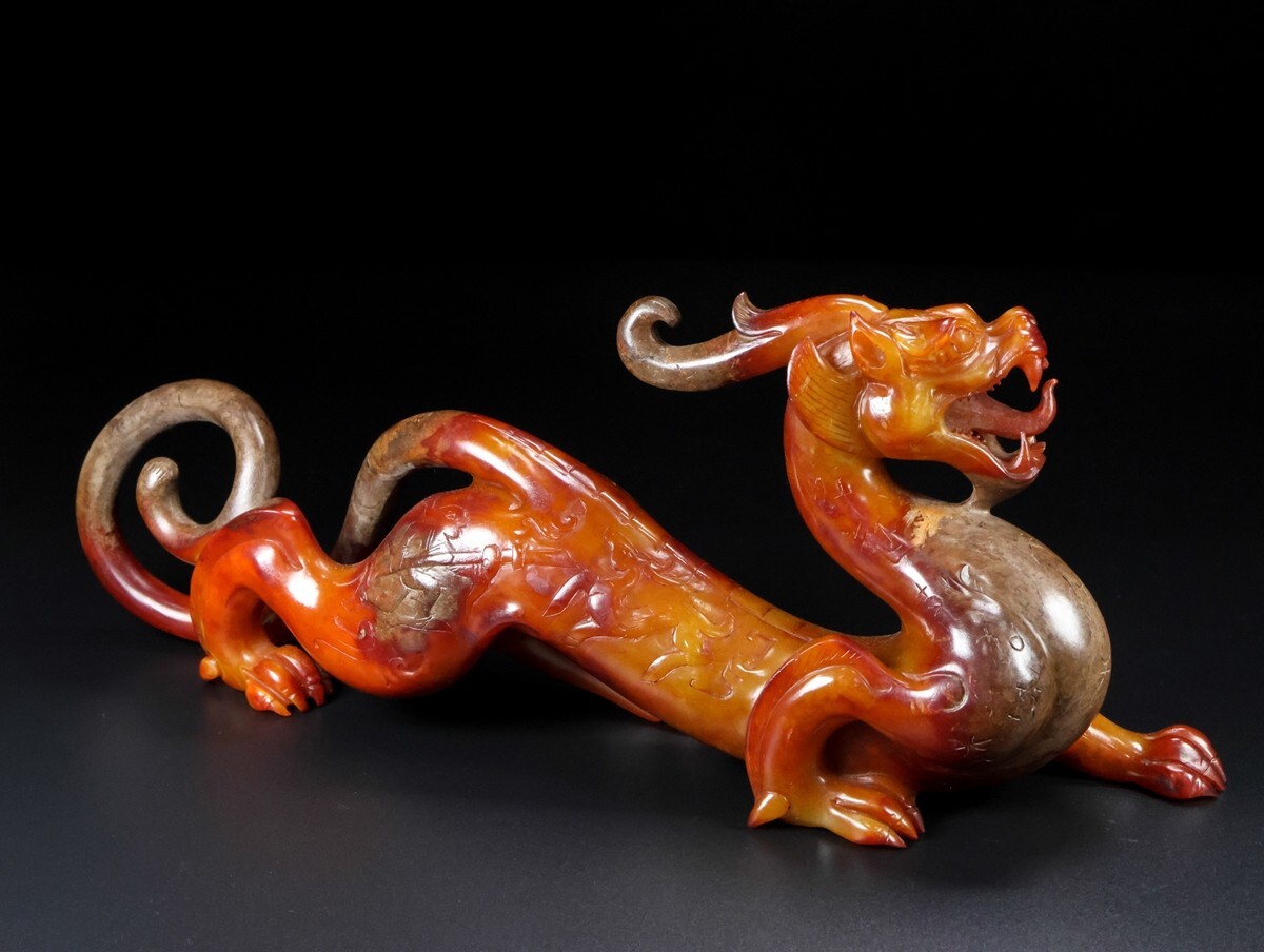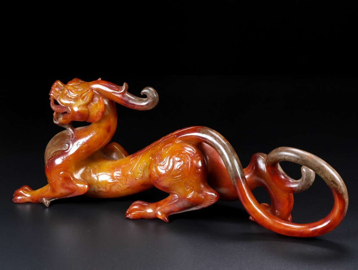 【瓏】和田玉 高古玉彫 銘文 玉龍 時代物 極細工 手彫り 置物擺件 中国古賞物 古美術 蔵出